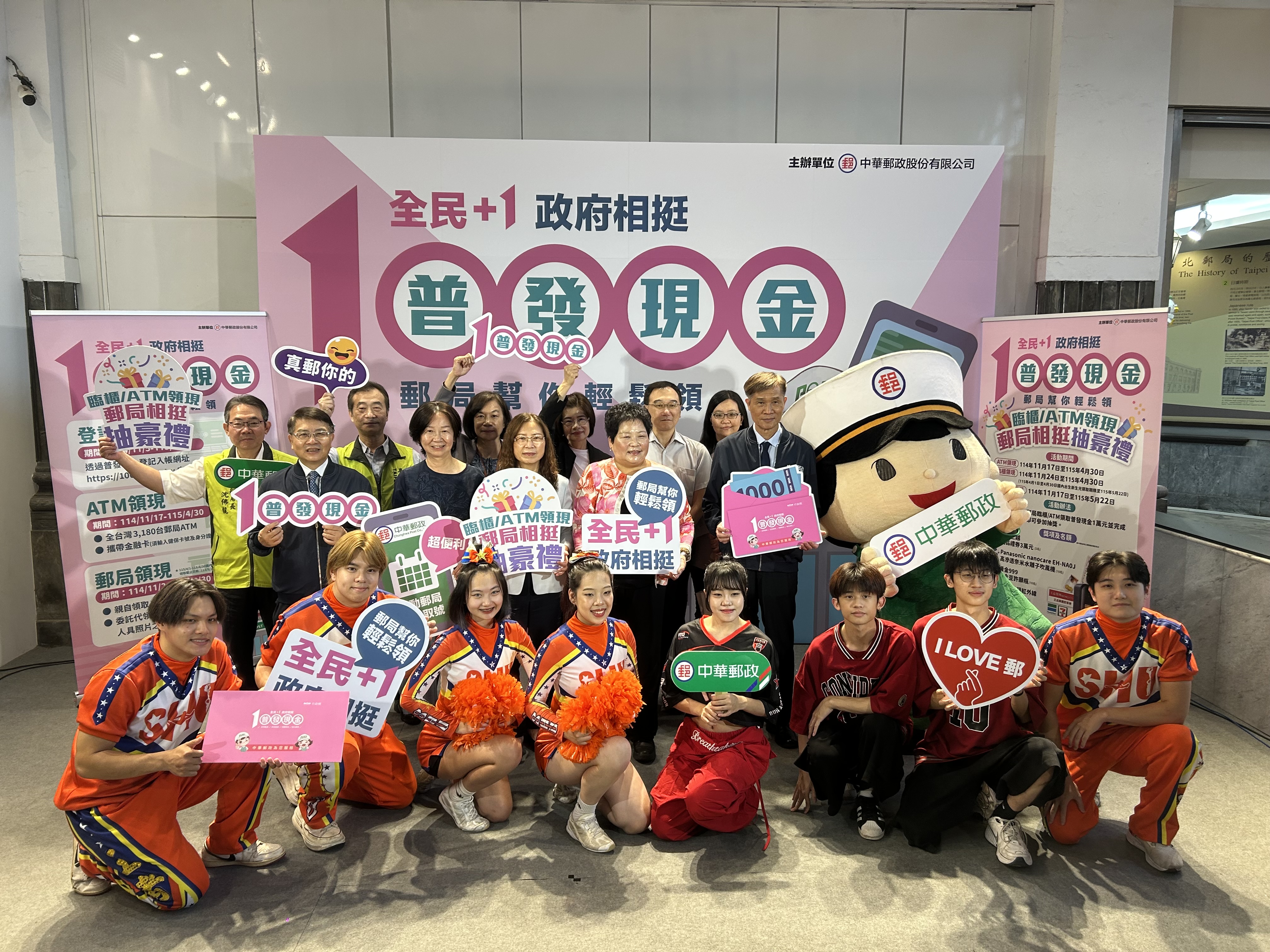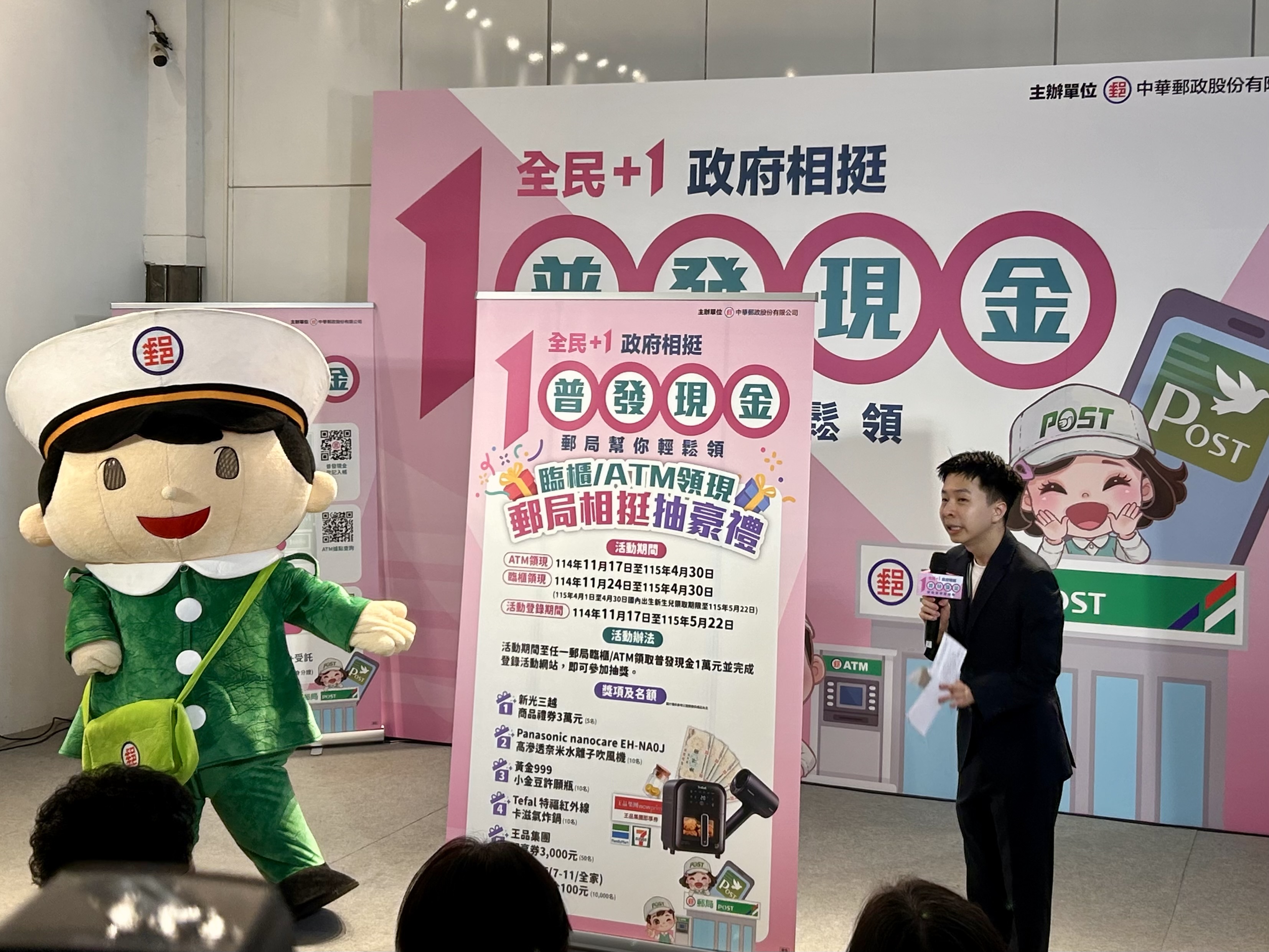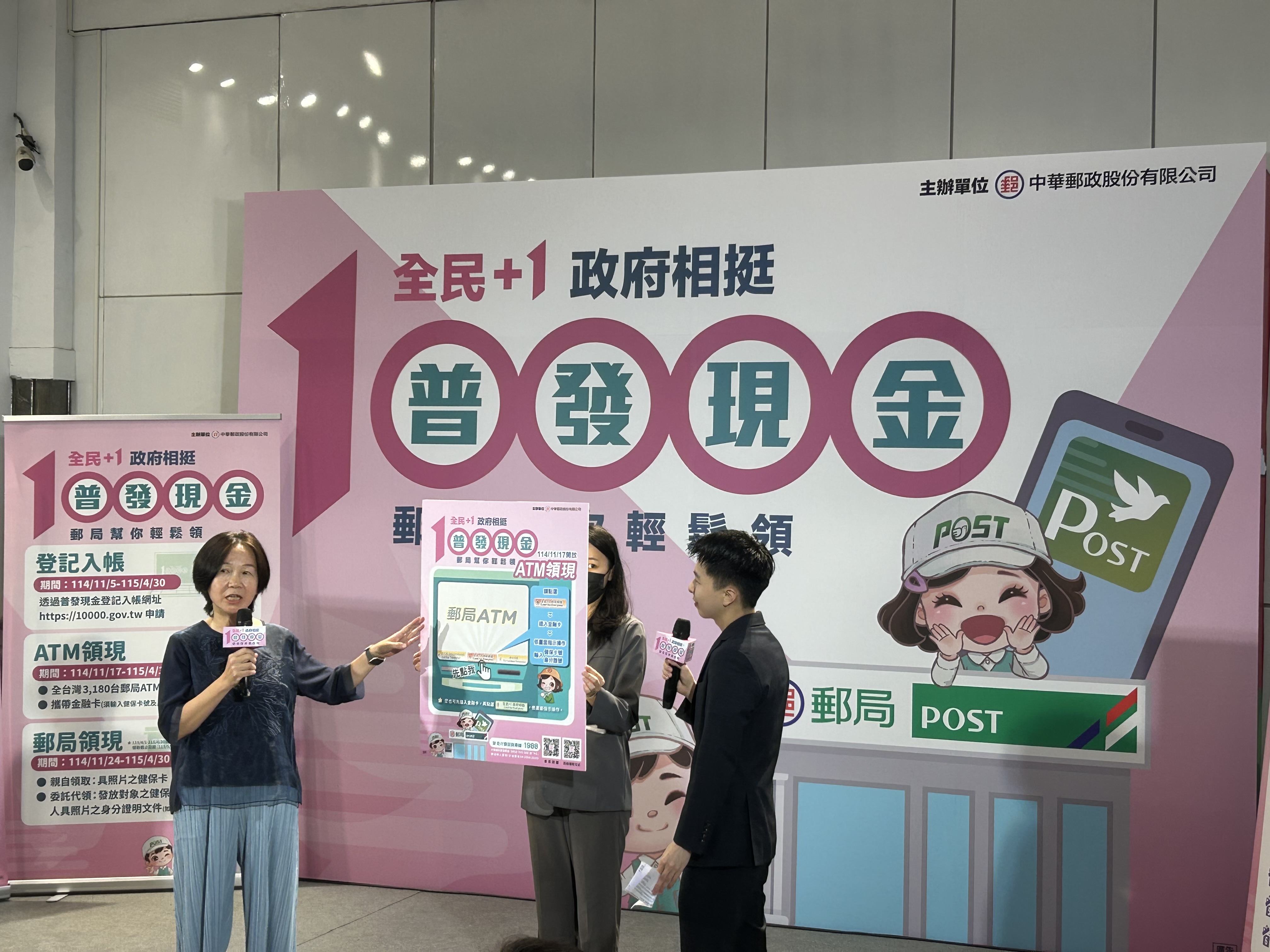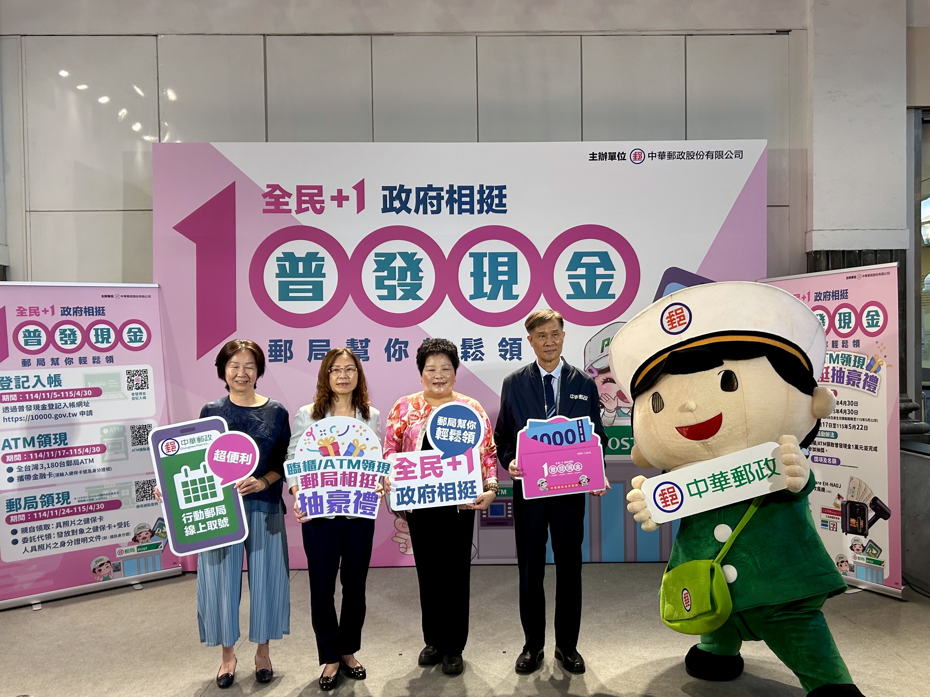 【林文強/台北訊】政府「全民+1 政府相挺」普發現金1萬元即將開跑,中華郵政公司發揮全台最密集的服務網絡優勢,提供「登記入帳」、「ATM領現」與「郵局領現」三大便民管道,讓民眾能依自身需求輕鬆領錢。郵局更推出限量紅包袋贈送與抽獎活動,讓全民不僅領現金,還能領好運。