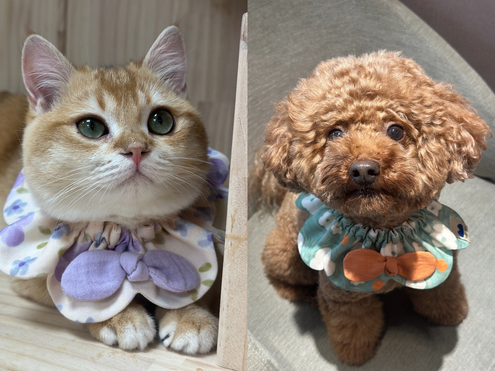 圖說:尾巴丘「春之花圈領巾」採立體花瓣剪裁與鬆緊穿脫設計,兼顧佩戴舒適度,無論是貓狗都能輕鬆駕馭。(資料來源:尾巴丘毛孩選物)