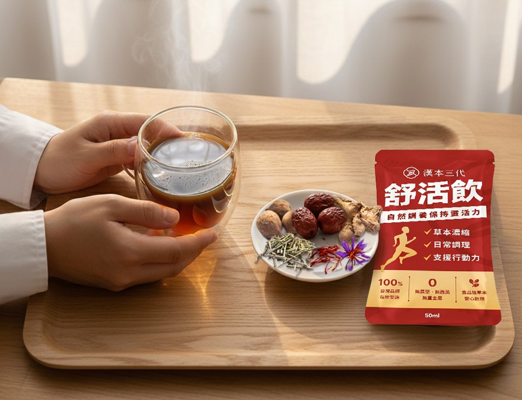 漢本三代有限公司近期推出「漢本三代舒活飲」,以傳承三代的漢方概念結合現代製程技術,提供日常營養補充型飲品的新選擇。品牌代表陳宥竹表示,產品設計的出發點主要來自於觀察不同族群的生活需求,希望在忙碌的生活中,提供一種更為便利的營養補充方式。