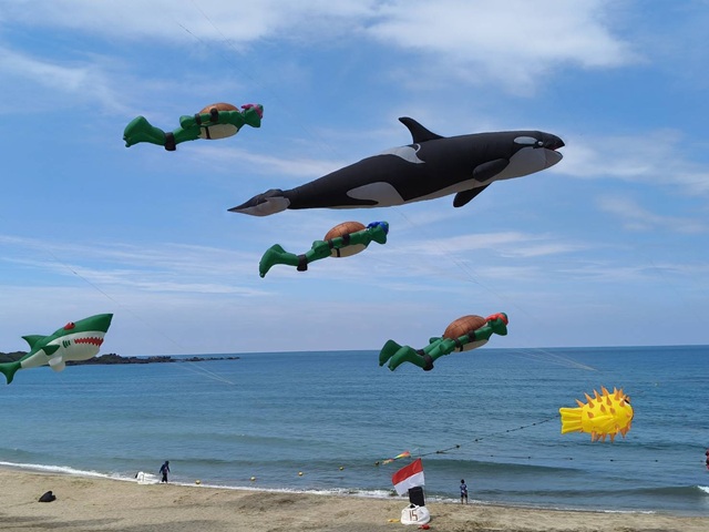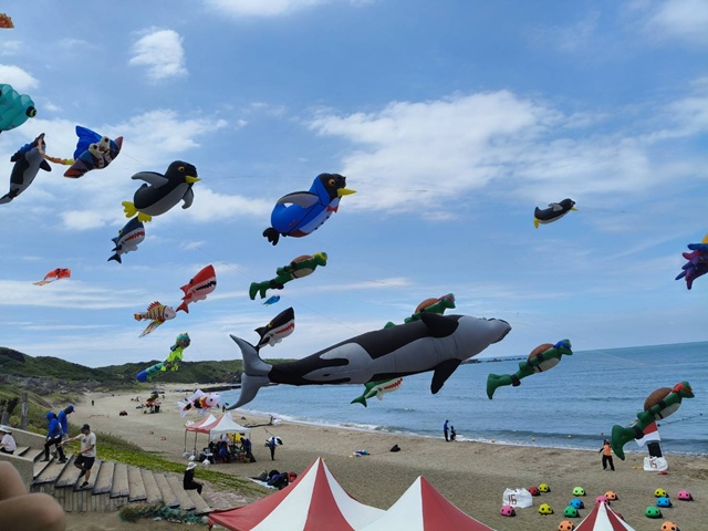 石門區長吳家兆表示:「本次風箏造型以海洋生物為靈感來源,包括 鯨魚、海螺、獅子魚、章魚 等。其中最受矚目的有長達 45 公尺的巨型章魚風箏與約18公尺的大型鯨魚風箏,還有最近非常歡迎的小瓢蟲及企鵝等。
