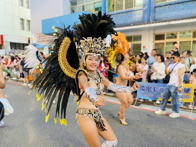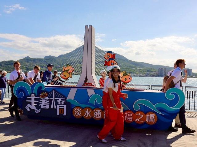 各踩街隊伍在服裝和道具設計上別具巧思,巧妙融入「銀白」、「淡藍」、「螢光」等色系與線條,不僅象徵著橋樑與海天相連的絕美意象,更傳遞出淡水這片土地的活力與夢幻。現場表演形式更是多元紛呈,從動感的吹奏樂器、熱情的擊打樂器,到曼妙的舞蹈與主題藝術裝扮,活動也吸引日本福井縣大飯町等國際友好城市副町長反田志郎先生率團前來淡水參訪,無不為嘉年華注入滿滿的節慶歡樂。