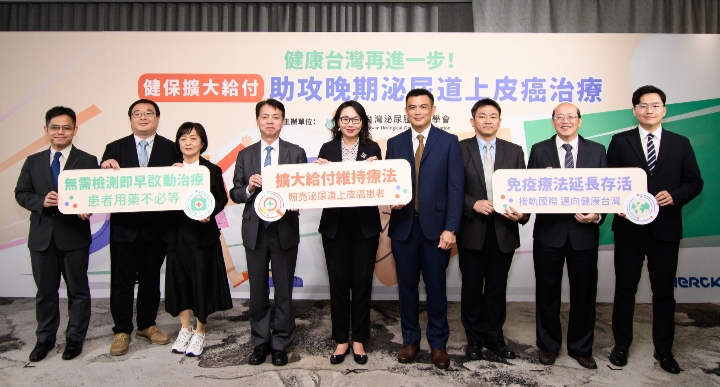 「這次健保給付的擴大,不僅是治療接軌國際,讓患者能在減少不必要檢測的情況下,使用合適且有效的藥物。」台灣泌尿內視鏡醫學會吳俊德理事長表示。泌尿路上皮細胞癌的治療是一條從診斷到後續追蹤的長路,這次擴大給付不僅使整體治療流程更順暢,也使醫師對患者後續照護的規劃更有信心。台灣癌症研究學會蘇柏榮理事長也分享,有臨床數據的支持,醫師如今能依循治療建議,及早為化療後患者提供維持性治療,使整體照護路徑更完整。對此,臺灣楓城泌尿學會鍾旭東秘書長也表示,此次的擴大給付,讓醫病雙方可以更專注於治療本身。臺北榮民總醫院腫瘤醫學部主治醫師賴峻毅指出,過去在臨床上,經常看到許多患者在化療結束後,僅能被動等待復發,如今不僅能減少患者等待時的不確定性,對醫師而言,不必再有看著病友有藥卻無法使用的無力感,也能更直接的與患者討論後續的治療選擇。面對賴清德總統所喊出的「2030年降低癌症死亡三分之一」的目標,今年十月擴大給付的健保政策,將使更多泌尿道上皮癌細胞患者能夠即時用到合適的治療,過去患者看的到、用不到的窘境將不再發生。
