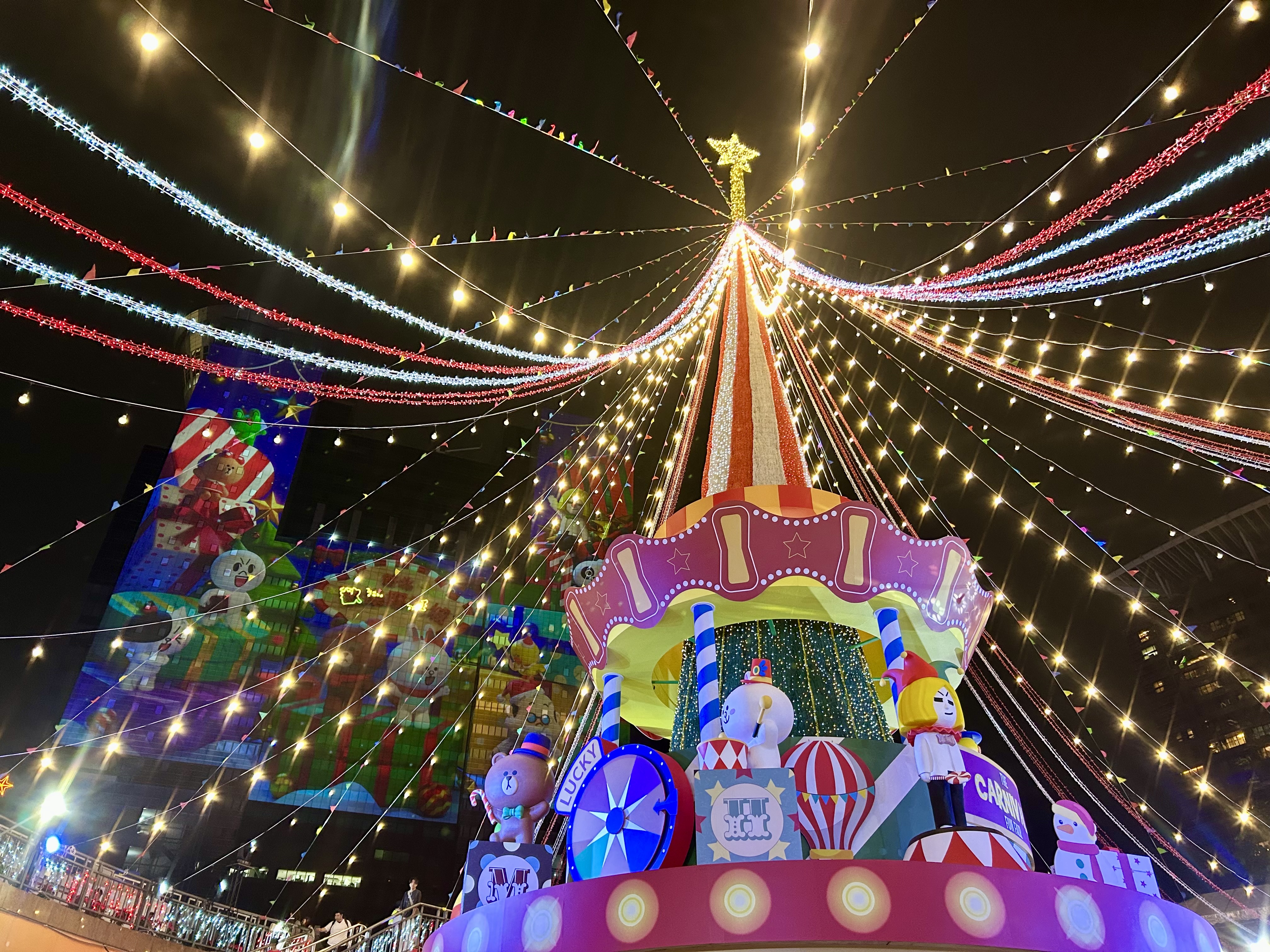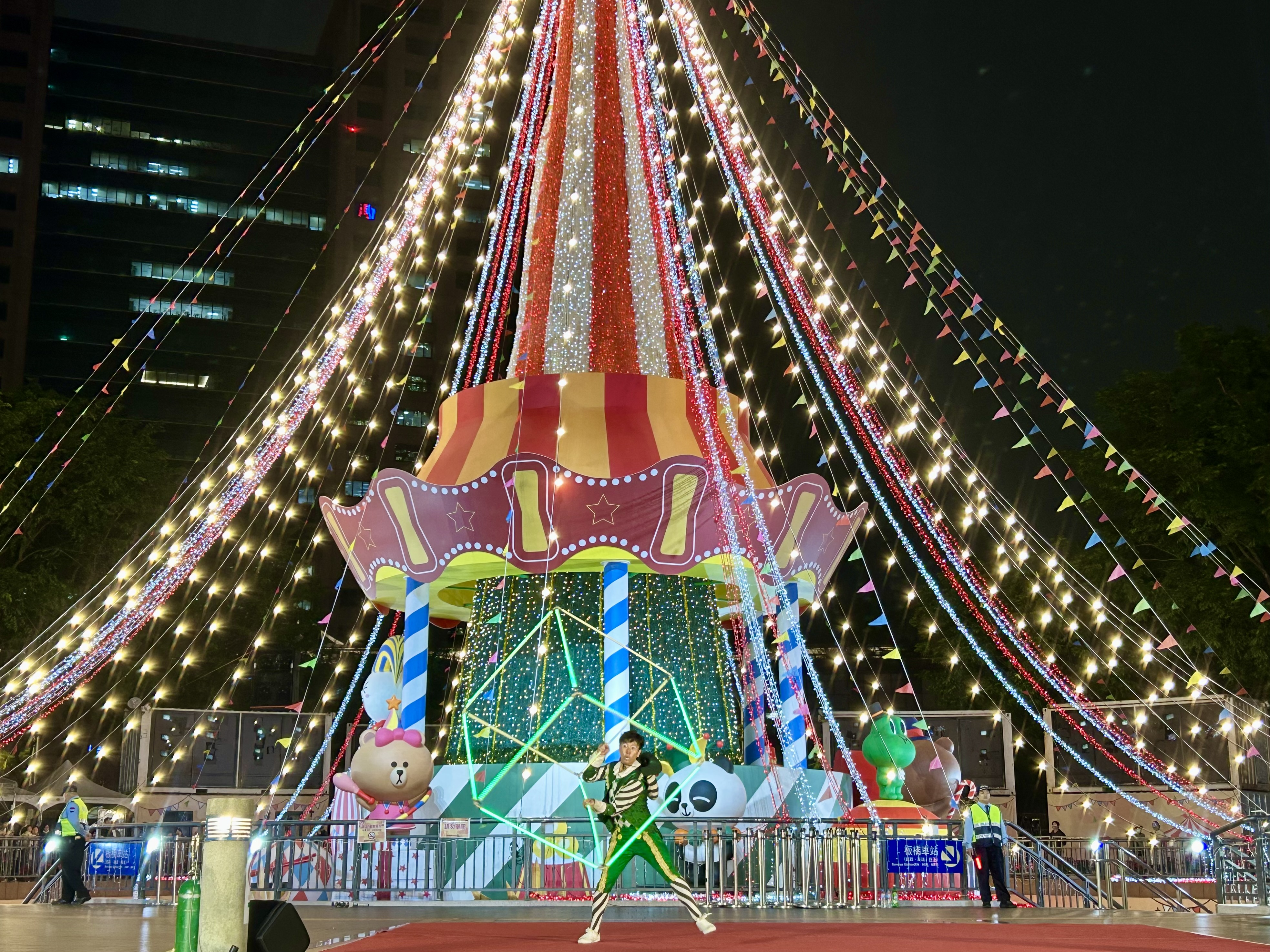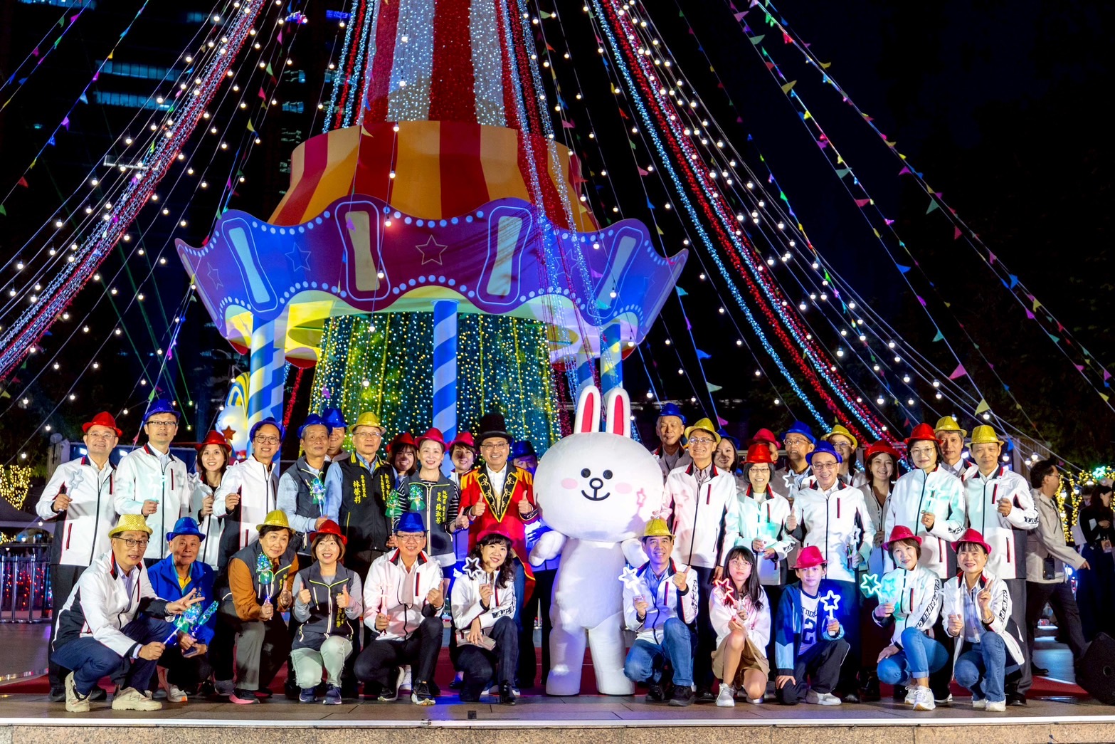 【林文強/新北市訊】「2025新北歡樂耶誕城」今(14)日晚間以震撼開場的「耶誕馬戲開城SHOW」華麗登場!今年攜手全球人氣IP「LINE FRIENDS & LINE FRIENDS minini」,以童趣風格打造全城燈飾與主題場景,耶誕樹「歡樂馬戲棚」亮起瞬間,全場尖叫聲此起彼落,掀起冬季最歡樂的序幕。