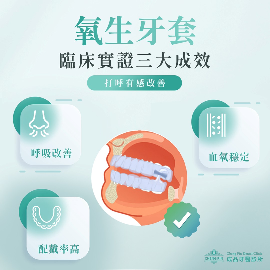 ▲成品牙醫透過台灣睡眠醫學會認證的臨床研究發現,配戴氧生牙套的打呼族群能有感改善睡覺時的呼吸狀況,讓血氧平衡穩定,使全身健康朝正向發展;也因為輕薄便利的特性,大大提升患者配戴的使用率,增加治療的效果。