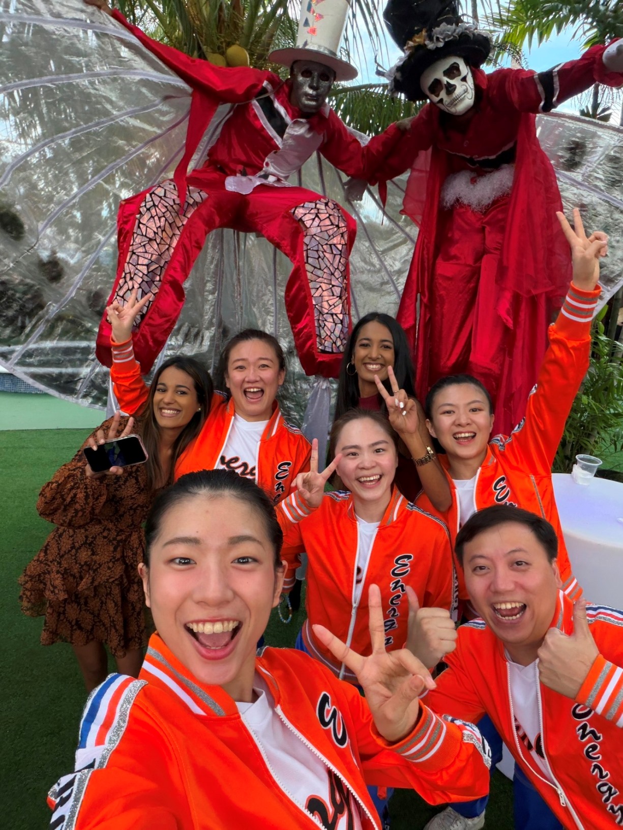 除了展現火鳳凰的剛毅與力量,欣平在此次行程中也換上了象徵和平的羽翼。早在2022年「良心領航 點亮希望」全球祈福大會中,她就曾以天使的身分參與演出,傳遞祝福。時隔三年多,她帶著這份使命感走進加勒比海,透過與同行志工創新的想法,讓天使有了全新的詮釋。