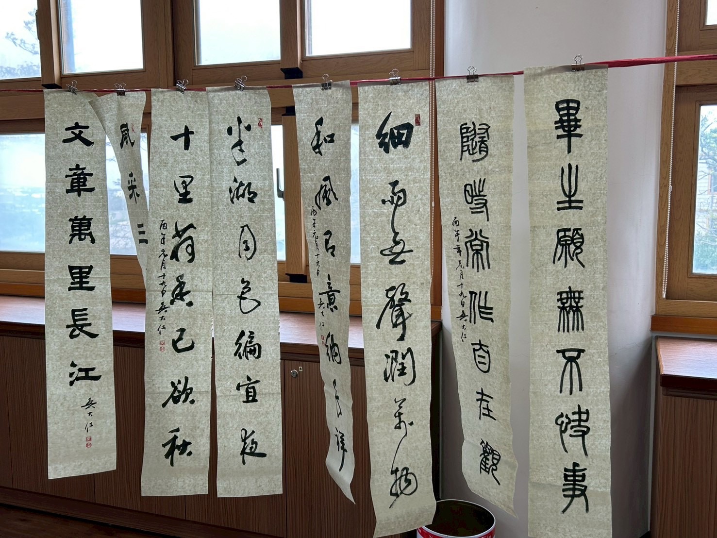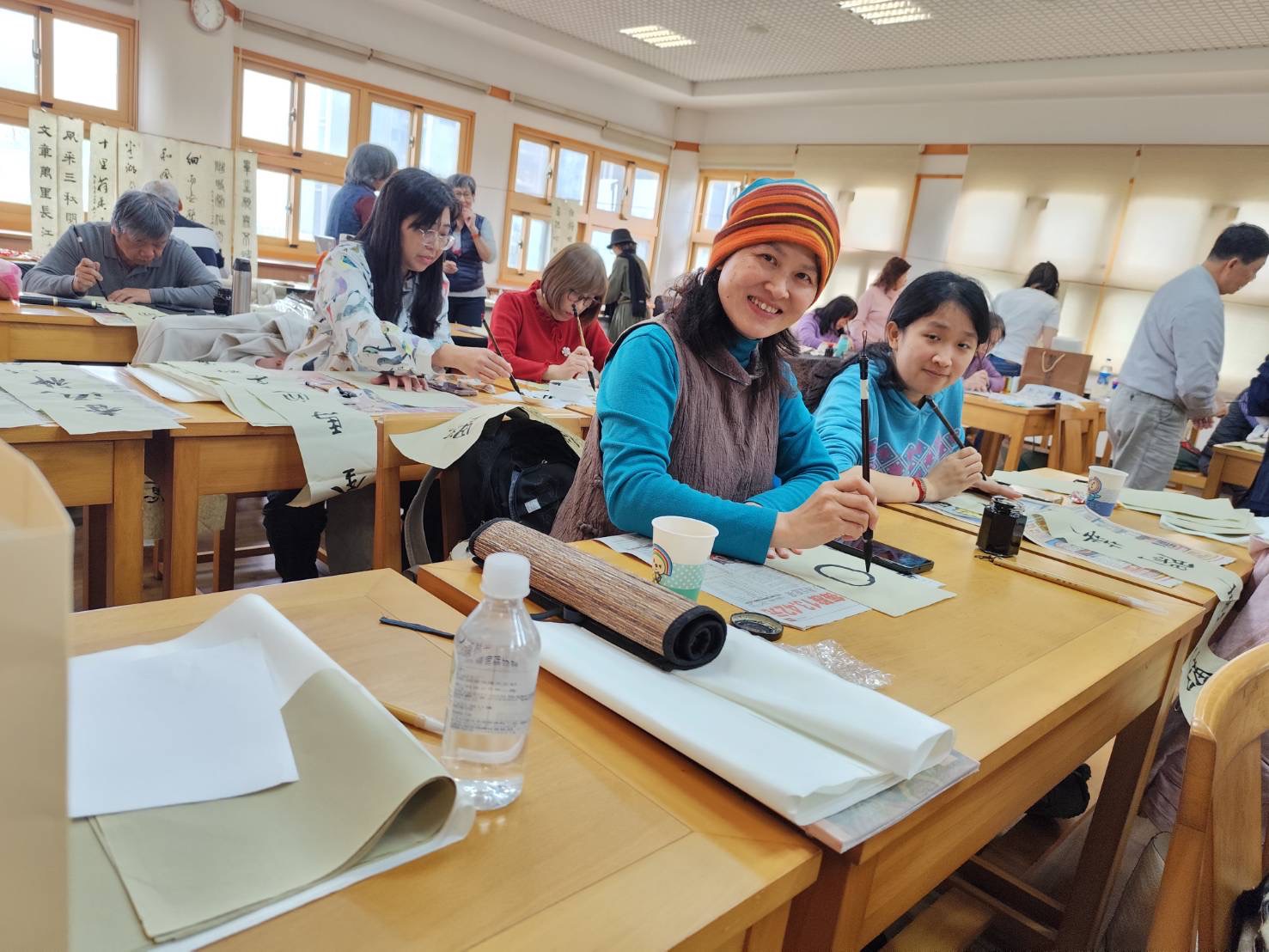 完成試筆後,大家的作品懸掛在會場四周,再舉行摸彩助興。吳軒慧及吳大仁、黃智鳳伉儷與參與活動者的作品摸彩互換。其中,吳大仁的摸彩作品,就多達5幅。