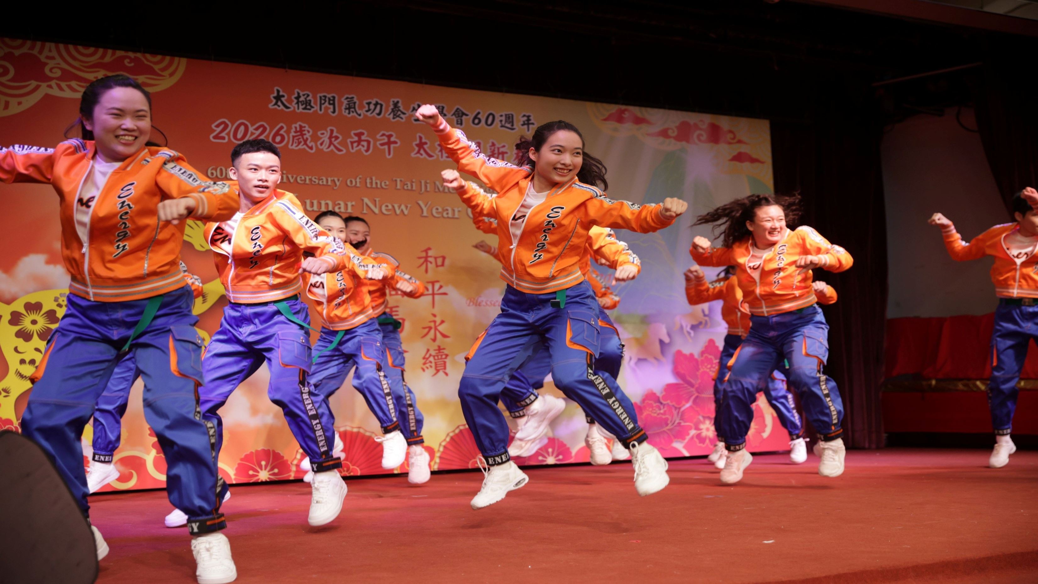 P4:太極門女弟子呈現《松鶴同春 福氣滿園》,仙鶴展翅,寓意長壽安康、福氣相隨。