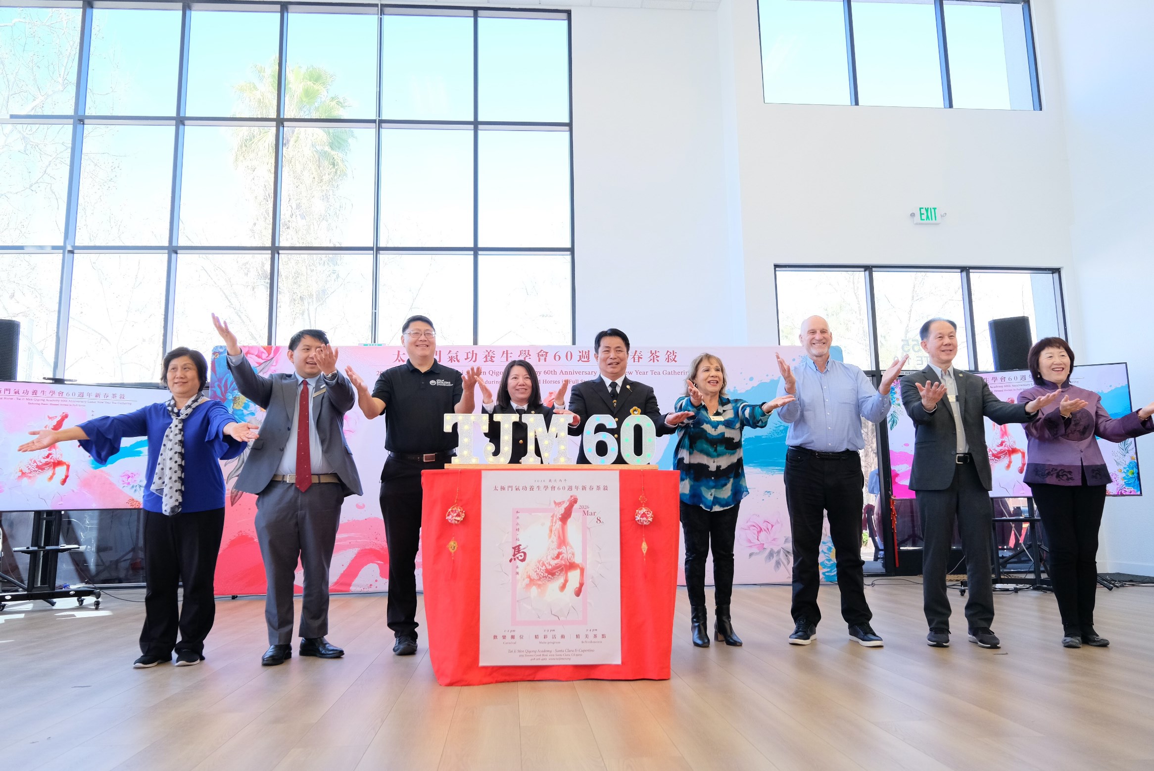 【記者Amy Chen/Cupertino 報導】迎接太極門氣功養生學會創立60週年,太極門北加州Cupertino與Santa Clara兩道館3月8日下午在Santa Clara道館舉辦「和平永續 福馬奔騰」新春茶敍。活動結合熱鬧歡騰的園遊會、精彩文化展演及練氣功心得分享,在春意盎然與濃濃年節氣氛中,吸引逾200位灣區民眾與各界貴賓共襄盛舉,一同在歡樂與祝福中迎接嶄新的一年。