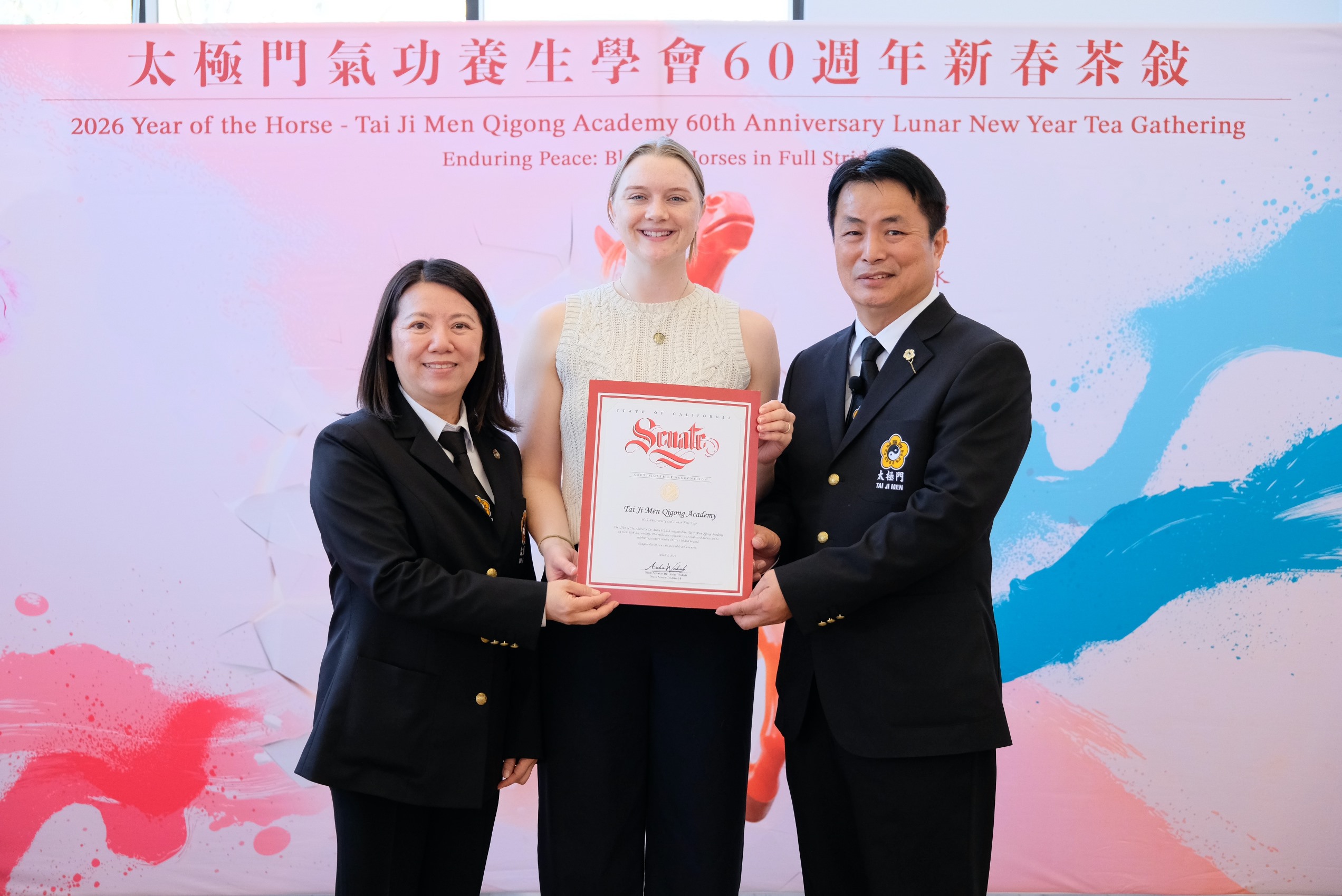 此外,國會議員Ro Khanna、加州參議員Aisha Wahab、加州參議員Dave Cortese、加州眾議員Alex Lee、Milpitas市長 Carmen Montano及聖荷西全體市政官員聯名致贈表揚狀,讚揚太極門多年來對社區的積極奉獻與正面影響。Alex Lee眾議員更特別於活動前傳送農曆新年祝賀影片,祝賀太極門氣功養生學會成立60週年,並肯定太極門長期以來對社區卓越的貢獻。