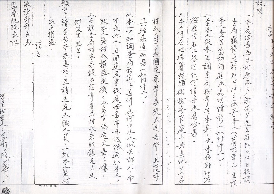 1、行政院多次去文法務部、國防部請其查辦,兩單位均不理會。