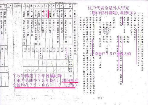 「眷村改建舞弊案」貪污數百億,眾多數高級將領,地方政要瓜分原眷戶及市府舖面,且行政院、內政部公文又被偽造做案: