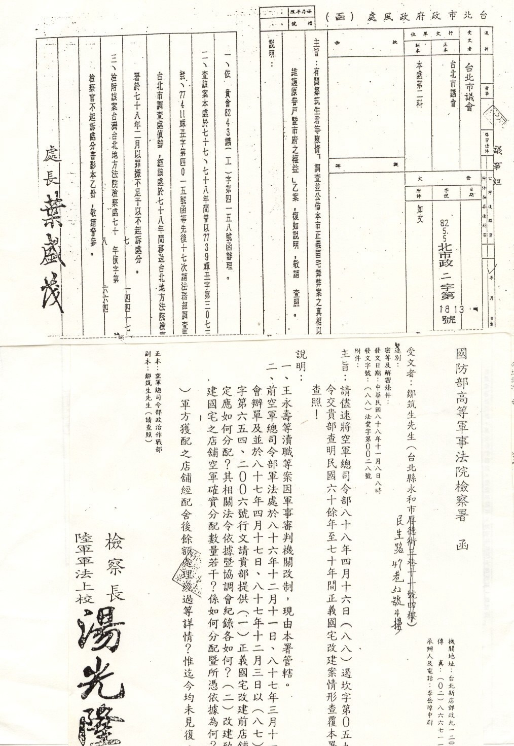 3、台北地檢署在78年請「空總軍法處」協查12項有關軍方兵與市府弊端疑點,也被他拒絕...