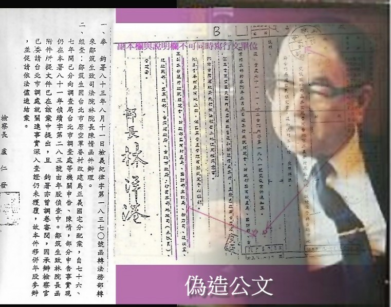 2、司法院長林洋港先生,內政部長任內公文被空總、國防部偽造做案,請法務部、調查局查處,也不理會...