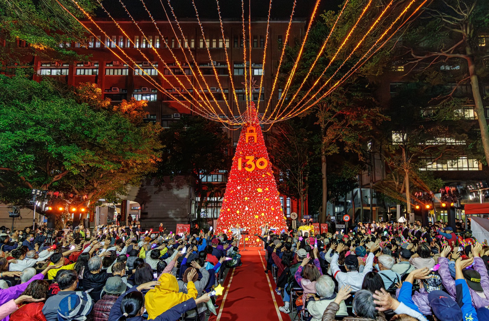 【記者陳駿彰/台北報導】你看過全紅的聖誕樹嗎?國北教大27日舉辦「130向前走」校慶點燈祈福典禮,是國北教大及校友總會、億光文化基金會主辦,結合「雙春金蛇年」意涵,用5000多顆金銀紅聖誕球妝點,在絢麗天幕光影折射的璀璨燈海下展開,吸引上千師生及各界貴賓同來祝賀,成為歲末最夯最飆的浪漫風情!