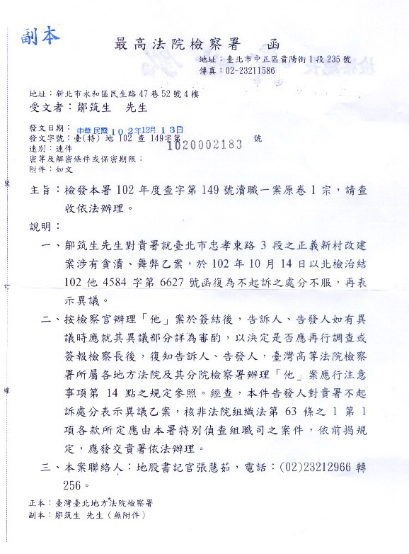 此為動摇國本的舞弊案,也是國安問題,擬由高檢署及刑事局、廉政署、新北警察局,共同偵辦為宜。