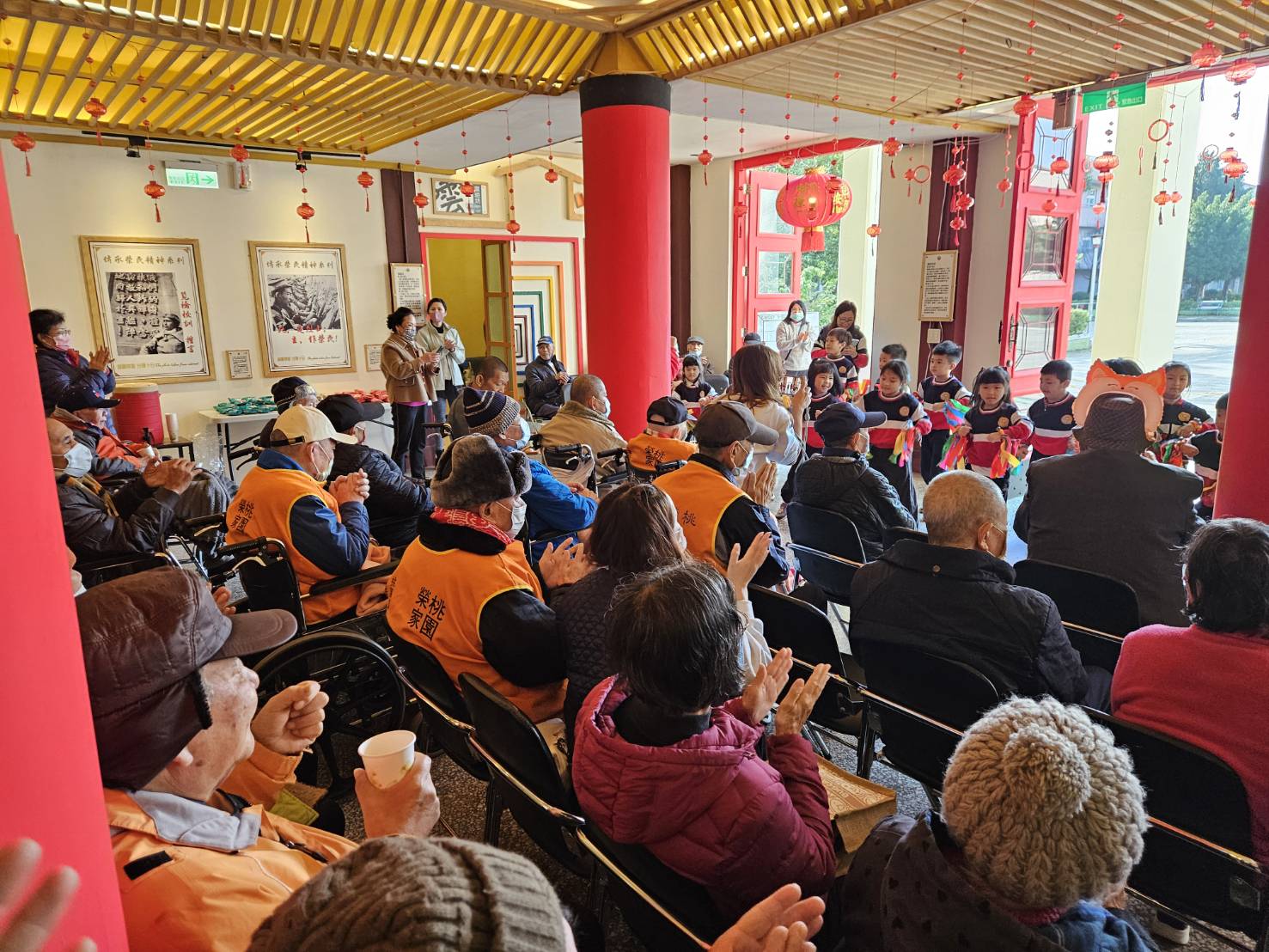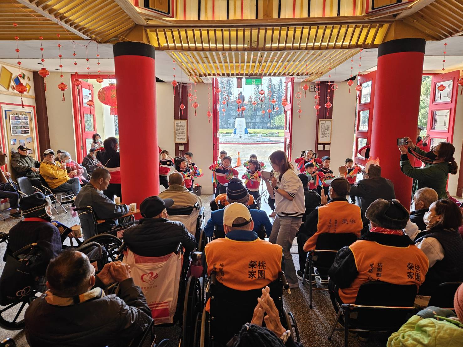 春節腳步漸近,年味愈發濃厚,桃園榮家洋溢著溫馨喜氣的節慶氛圍,為迎接嶄新的一年,於(3)日在家區國旗穹頂下,溫馨舉辦「馬運亨通亮新春」農曆春節點燈儀式,點亮中正堂大門兩盞大籠燈、200盞七彩小燈籠,以及閃耀旋轉大紅燈籠,象徵新的一年光明希望、平安順遂。
