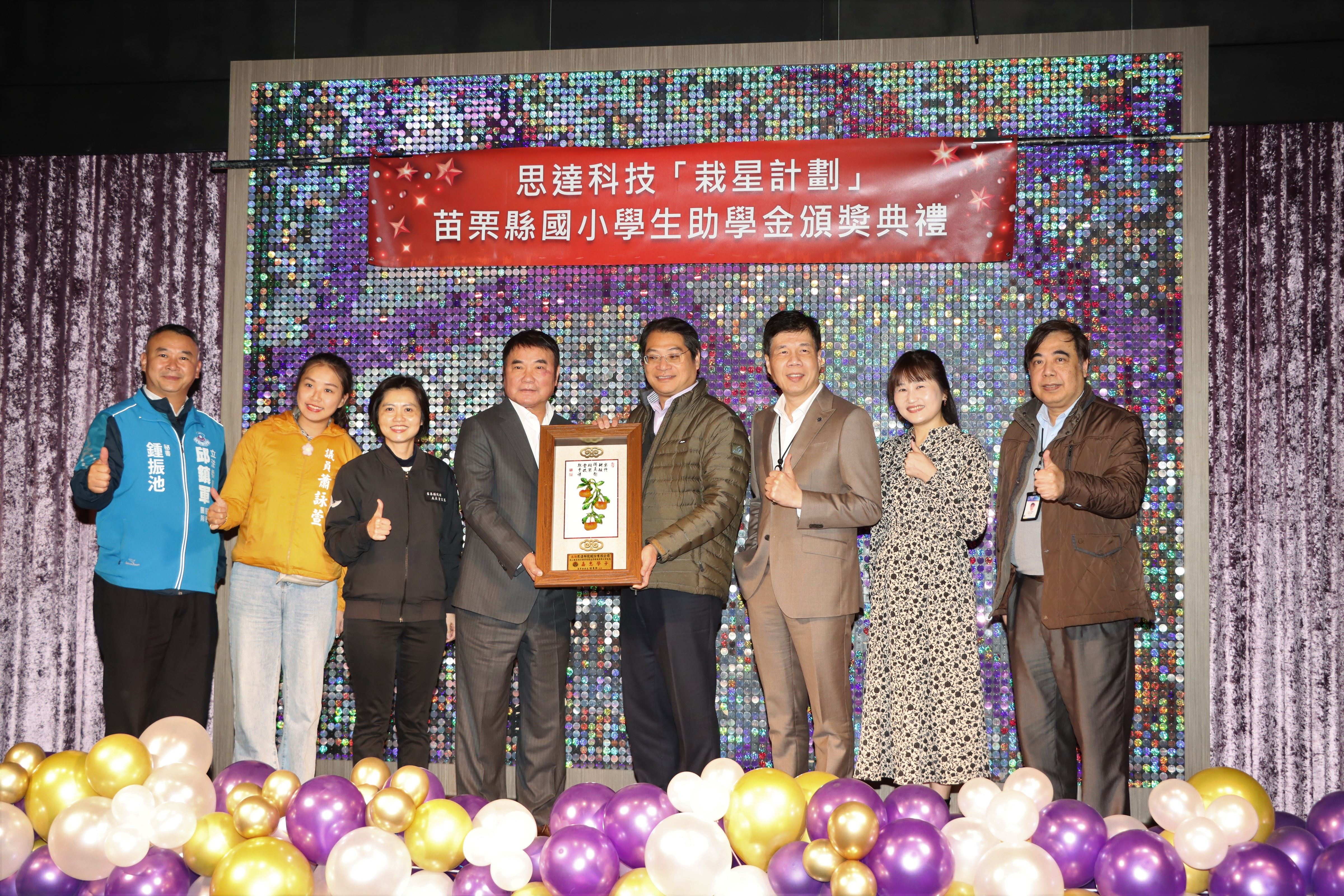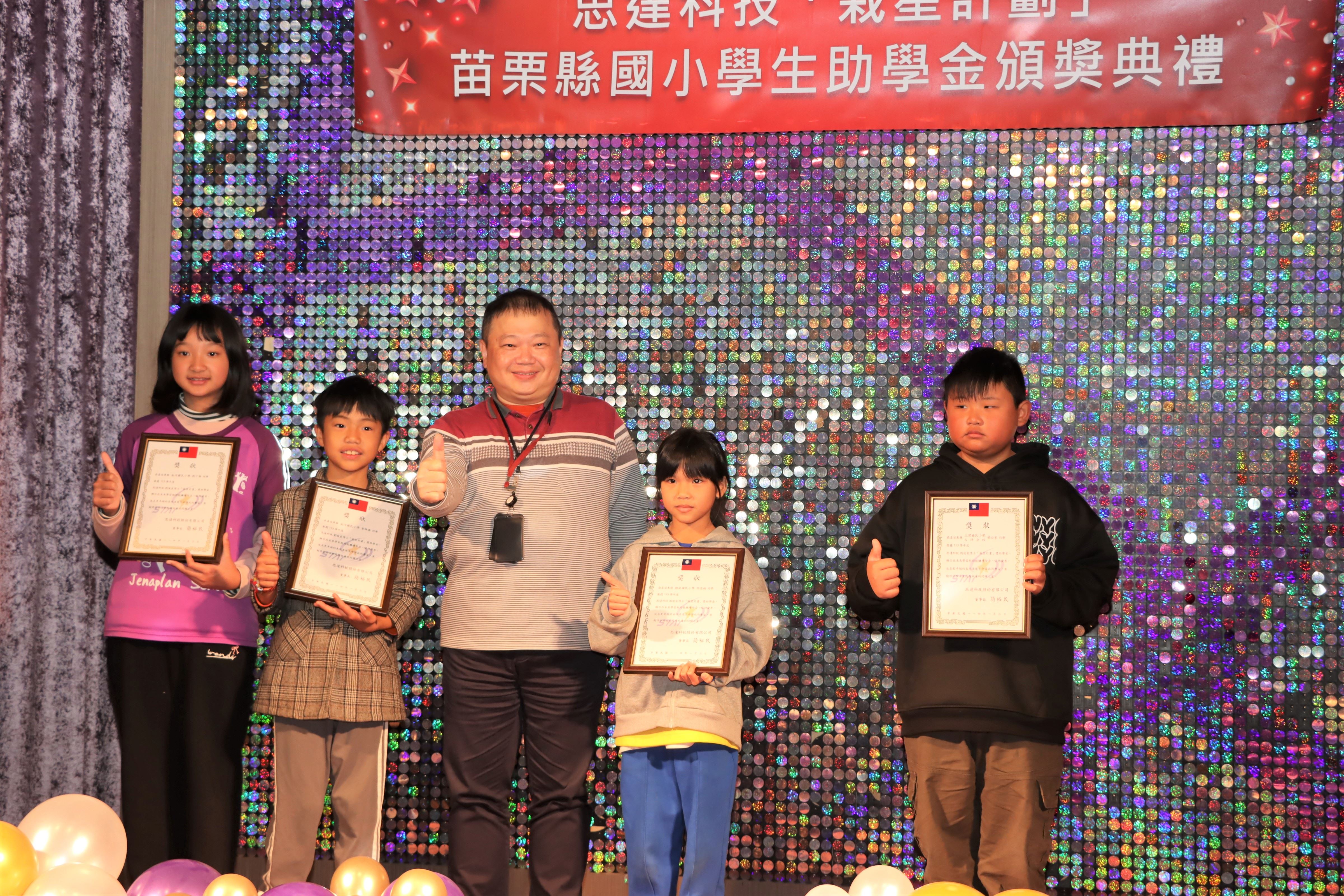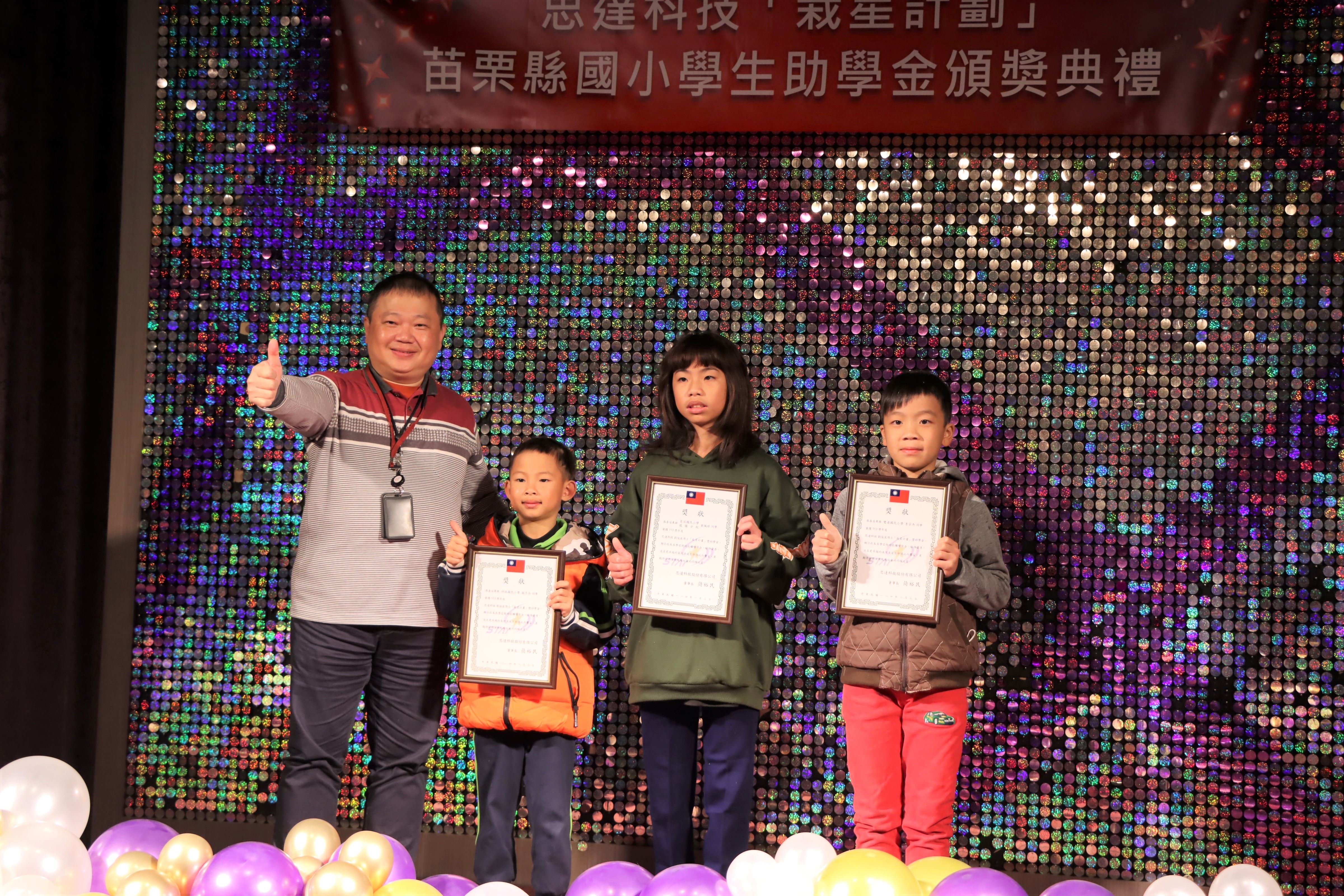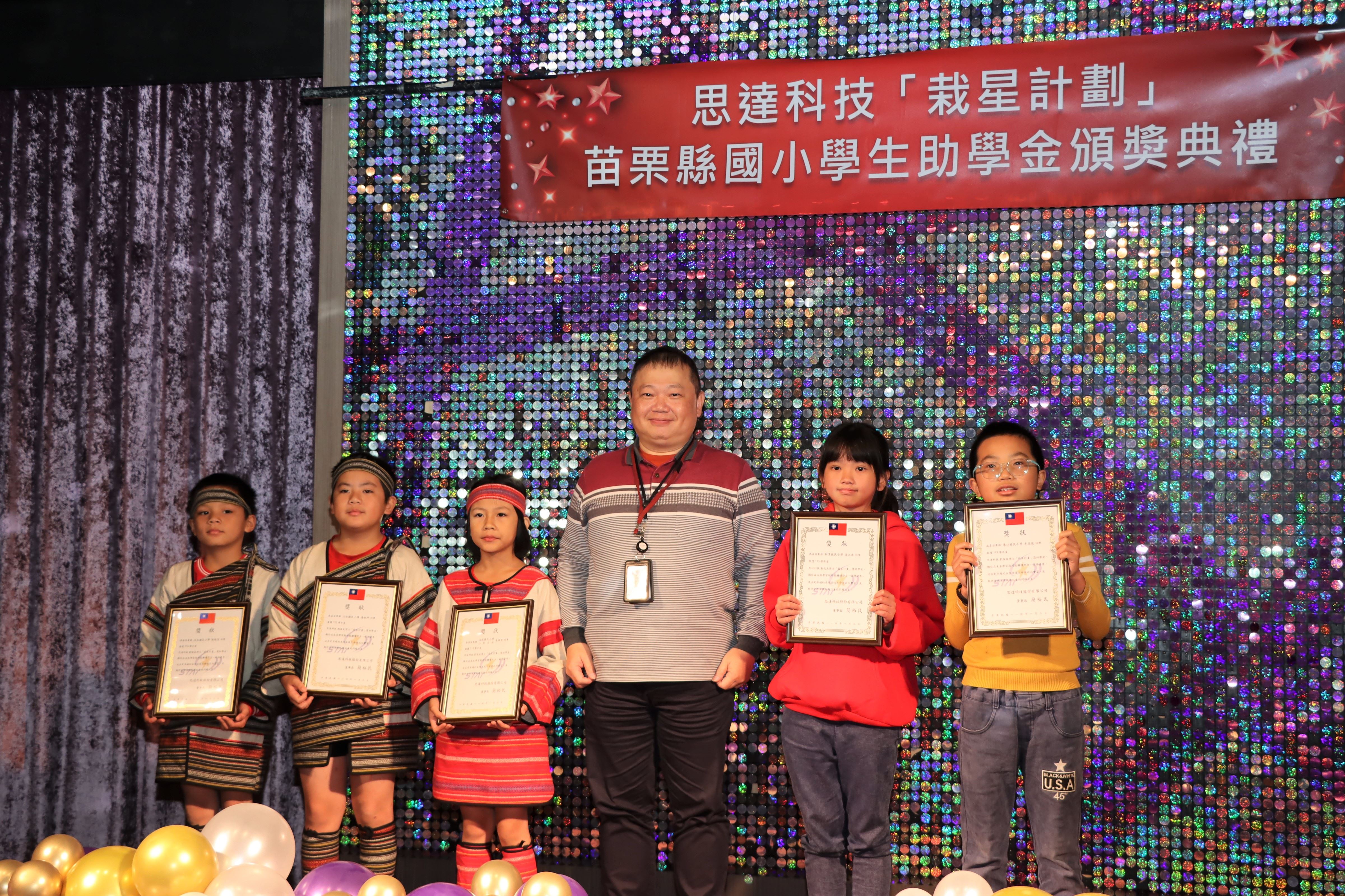 113學年度思達科技「栽星計畫」苗縣國小學生助學金頒獎典禮,1月3日上午在頭份市君樂飯店4樓夏愉廳舉行,捐贈獎助學金的執行長劉俊良博士且與受獎學童面對面互動對談,鼓勵學子們保持學習的熱忱,縣長鍾東錦期勉秉持「今日人幫我,明日我助人」的感恩心念,持續努力,勇於追夢。