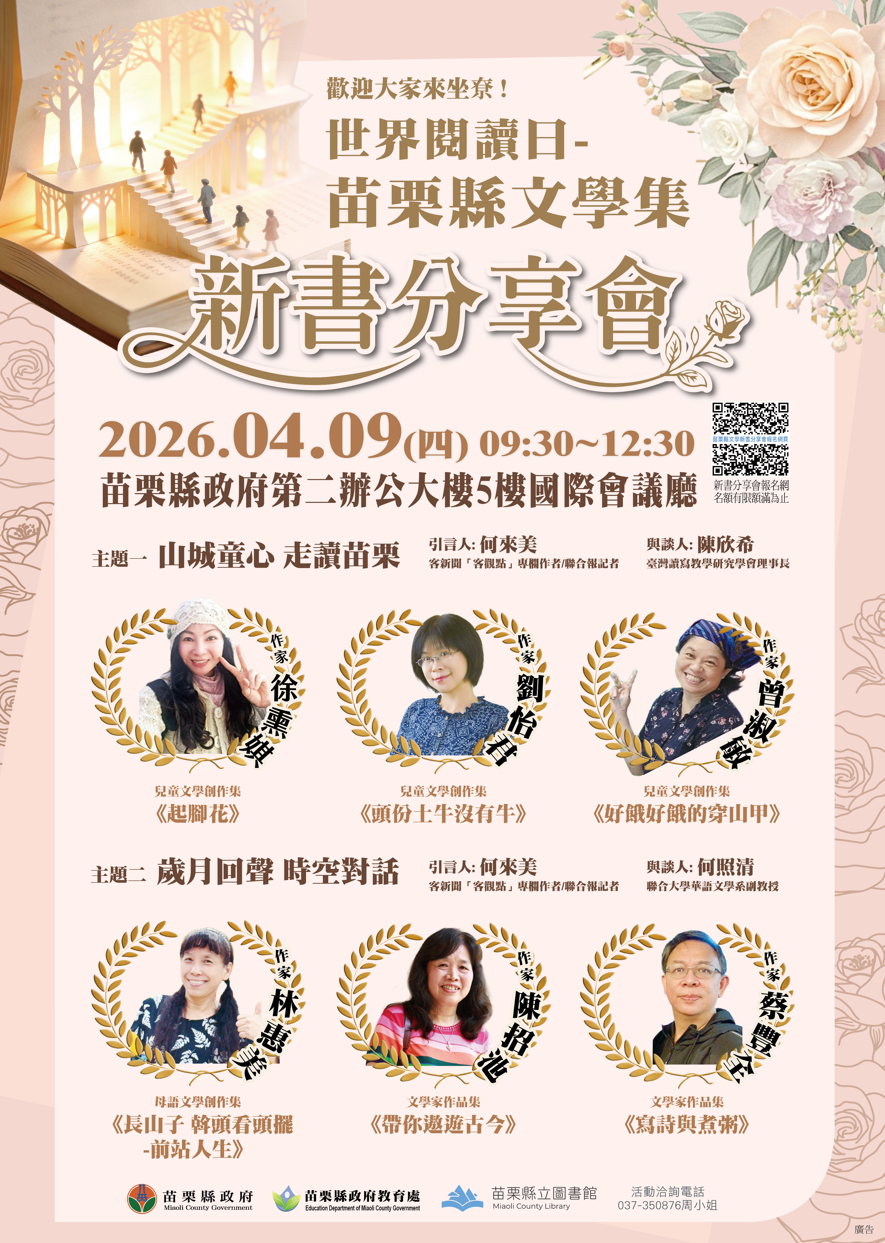 世界閱讀日-苗栗縣文學集新書分享會 歡迎您踴躍報名