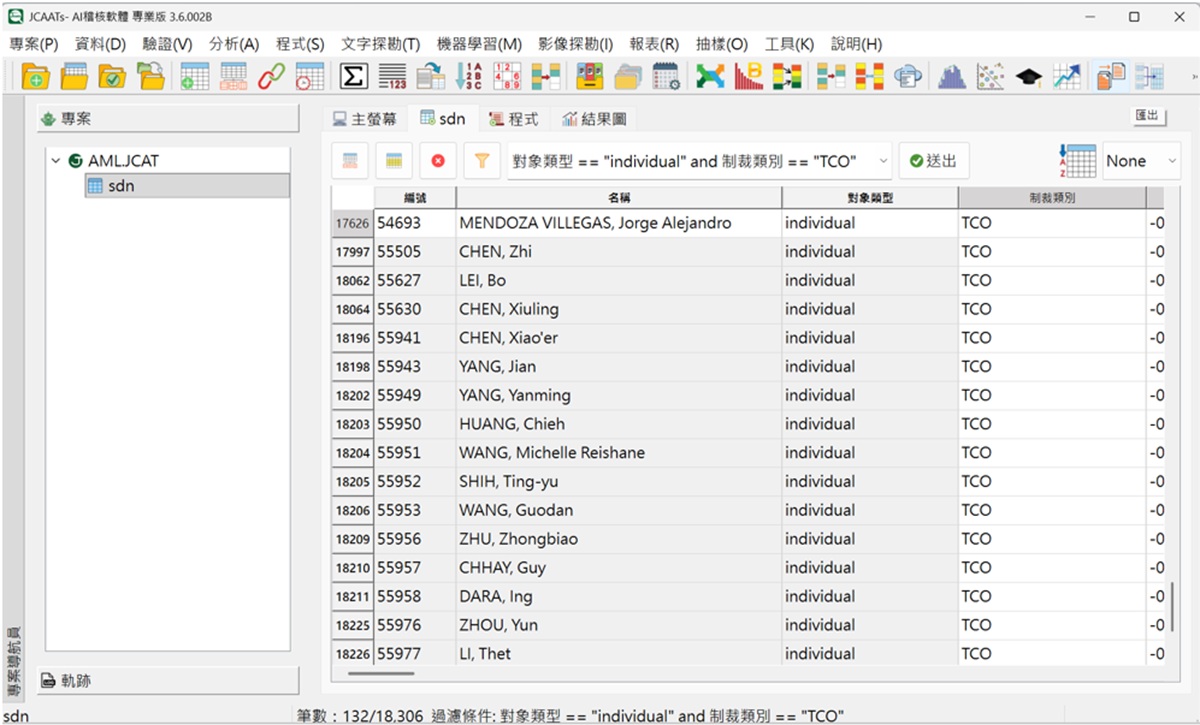 透過 JCAATs 的開放資料連接模組,系統可在 OFAC 公告當天即時擷取最新的 SDN名單資料,並自動整合至 AML/交易監控系統,讓稽核人員與法遵部門能在第一時間:
