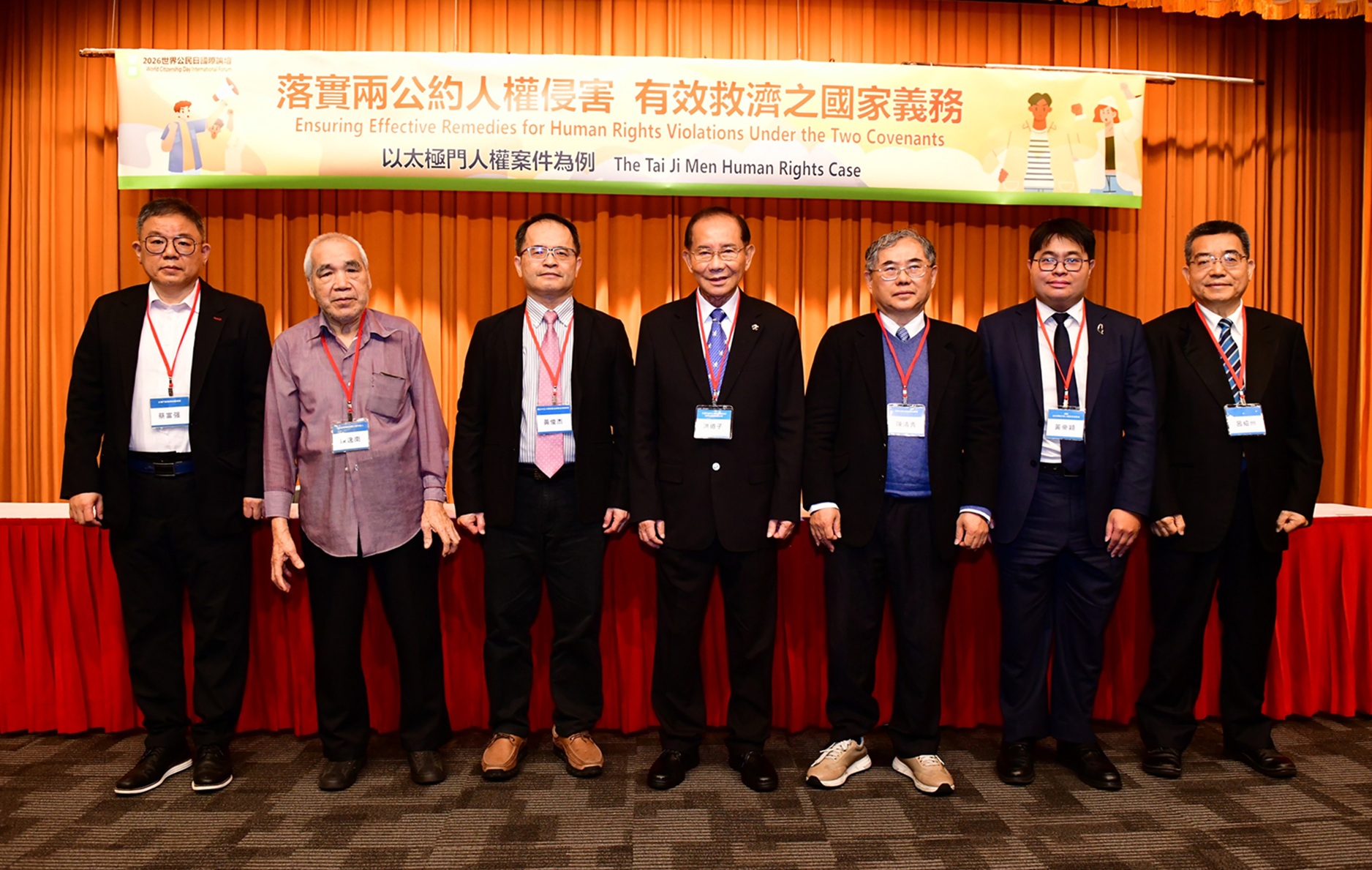 圖一、4月1日近30個民間團體在臺大應力館舉辦「2026年世界公民日國際論壇--落實《兩公約》人權侵害有效救濟之國家義務--以太極門人權案件為例」。