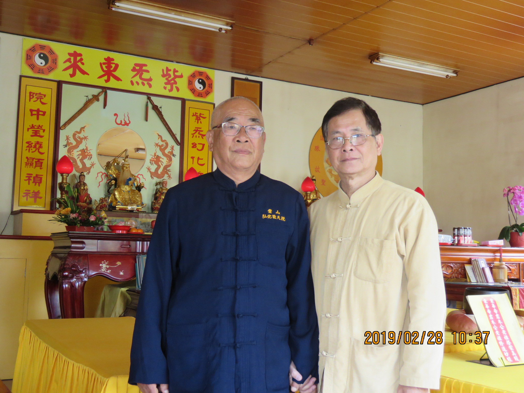 2019(108).02.28.(己亥.01.24.)星期四10:16~11:10,張友道(玄德)專程前往南投縣草屯鎮碧山路1138之1號~無極玄門『弘化敬天大道院』參拜,並和『玄孝院』大恩人林永根(弘本)院長合照。