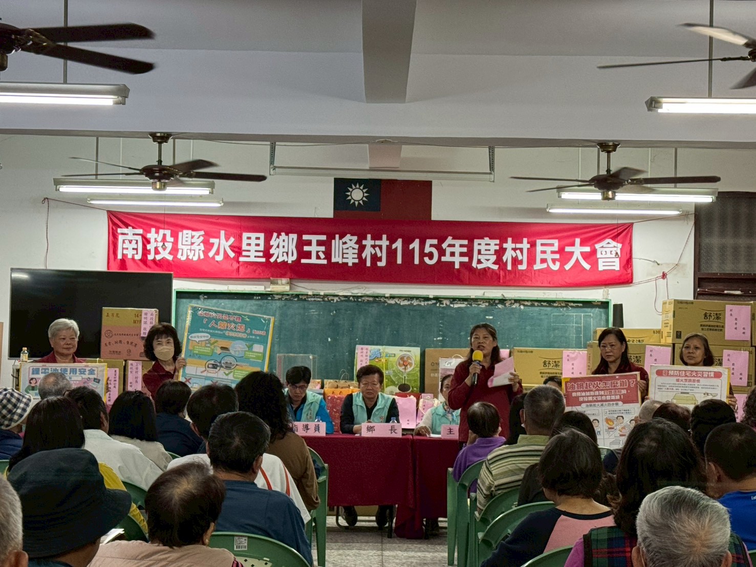 水里消防分隊與水里防火宣導隊於本月1、2日晚上7時配合水里鄉公所辦理『水里鄉115年度村民大會暨防火防災宣導』 (玉峰及農富村),現場由水里消防分隊及水里防火宣導隊人員利用各項防火宣導文宣執行各項宣導,如下: