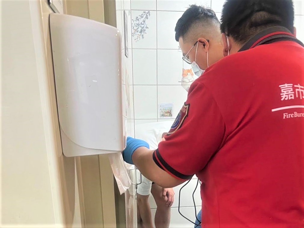 〔記者吳玉芬/嘉義市報導〕嘉義市政府警察局第一分局八掌派出所警員賴怡汎、李睿均、實習生范敏萱於日前擔服巡邏勤務時,接獲南京路段超商店員報案稱,有民眾待在廁所內長達兩小時之久,經多次敲門均無回應,擔心其發生意外危險,立即報警請求協助,員警獲報後立即趕赴現場。