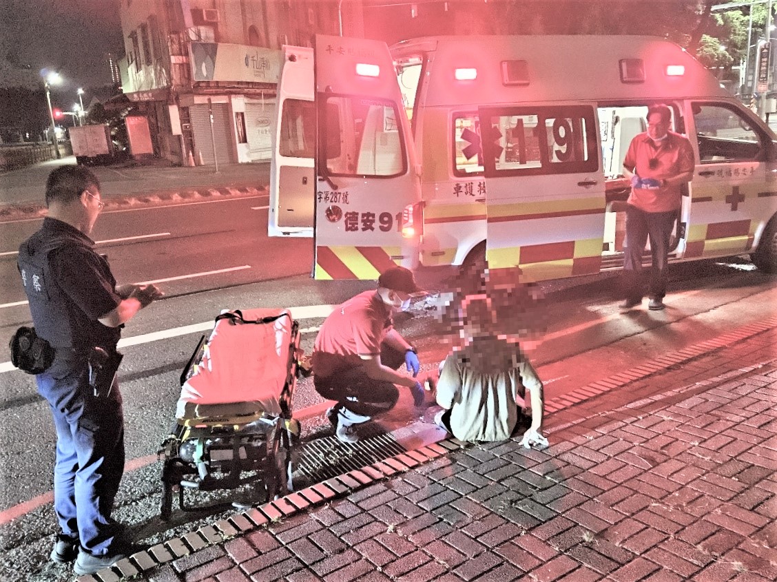 2員警於現場發現一名年約80歲坐於人行道邊緣,神情顯得痛苦與虛弱的老翁癱,身旁無陪同者,經關懷了解,邱姓老翁因當日情緒煩悶深夜時分,獨自一人外出散步,返家途中突感頭暈無力,精神狀況及體力耗盡疲累,身體呈現不適感,不慎跌坐於路旁,因下肢乏力而無法自行起身,只能無助地蹲坐原地,無法自行返家。