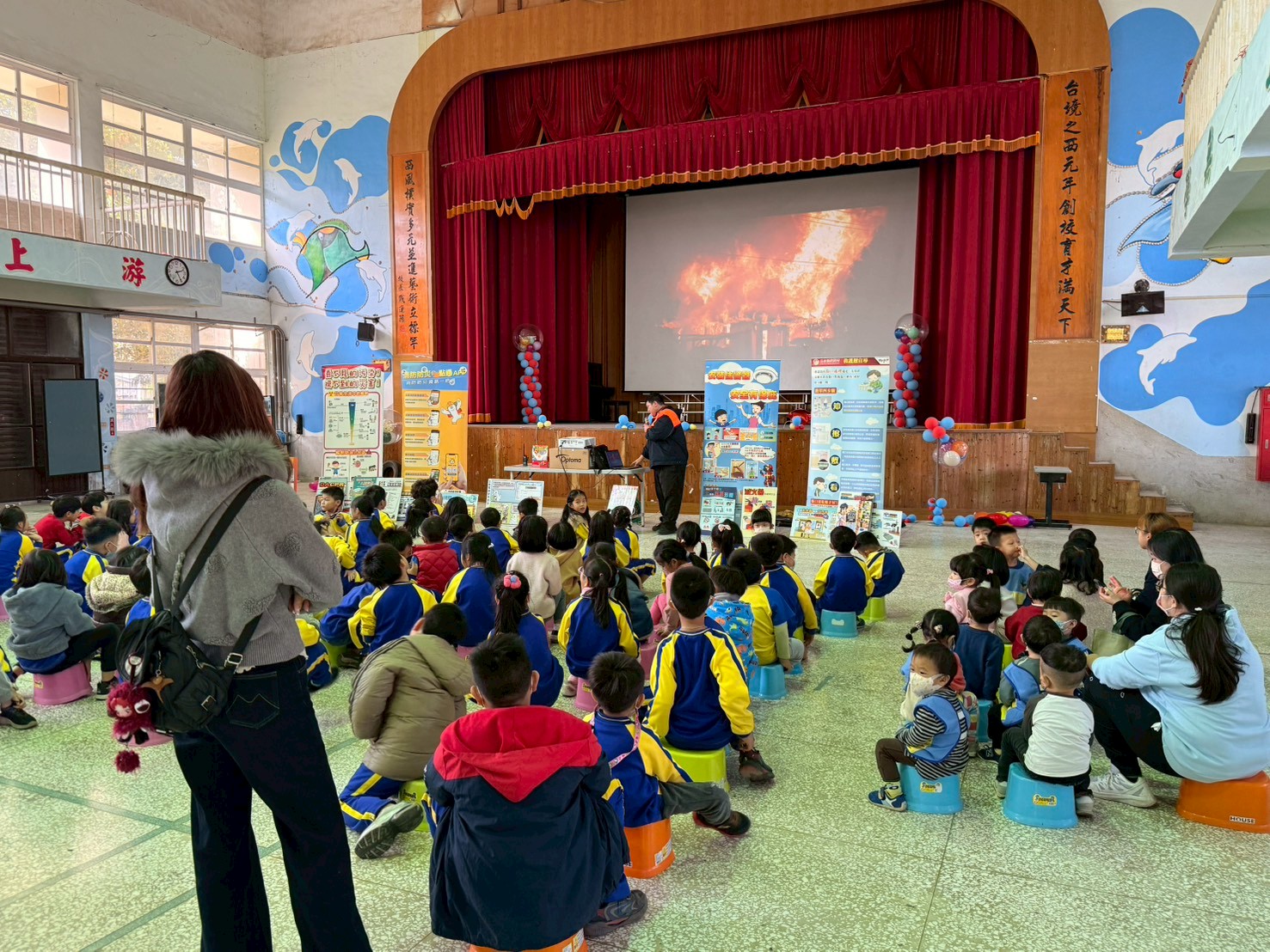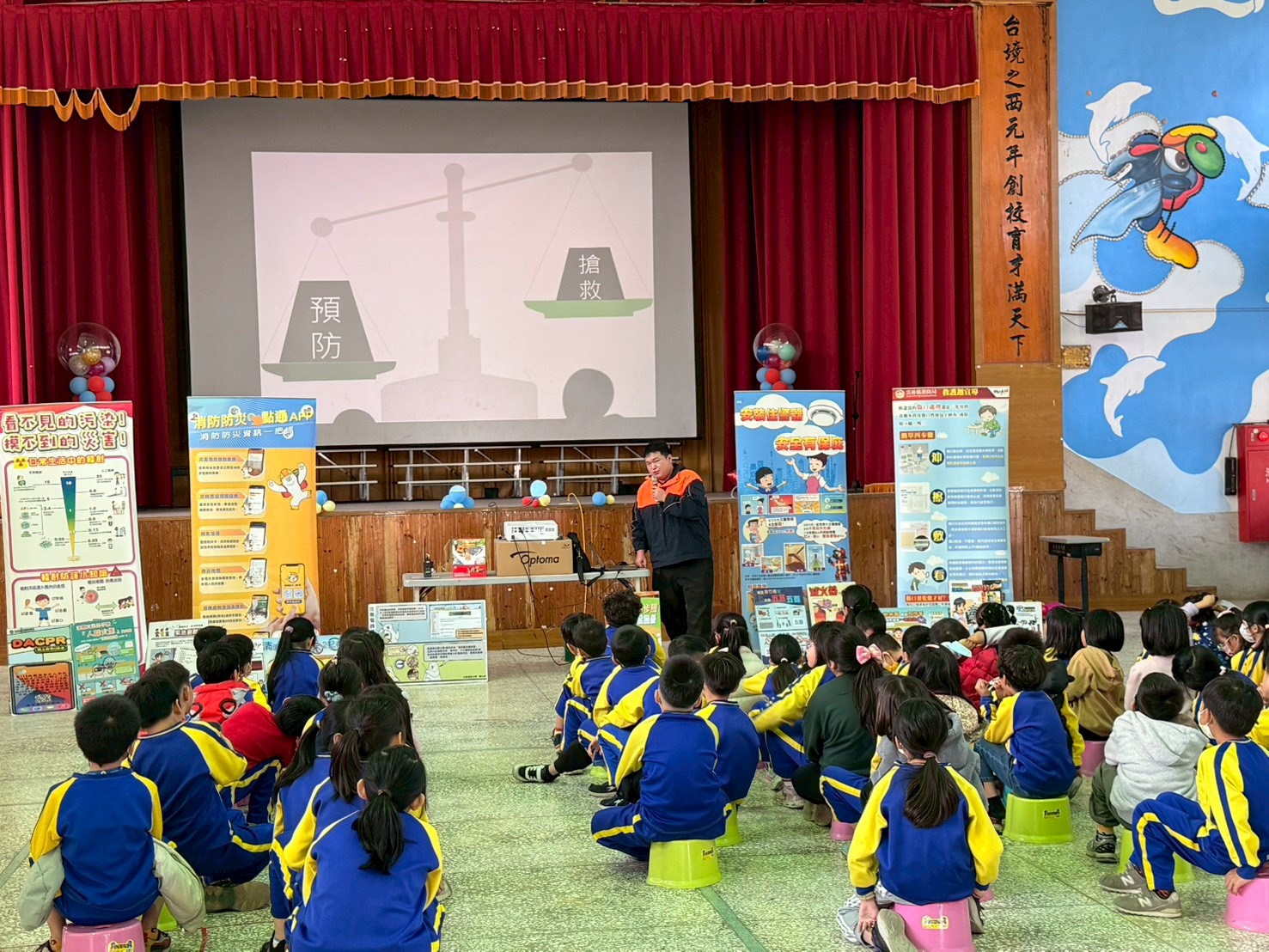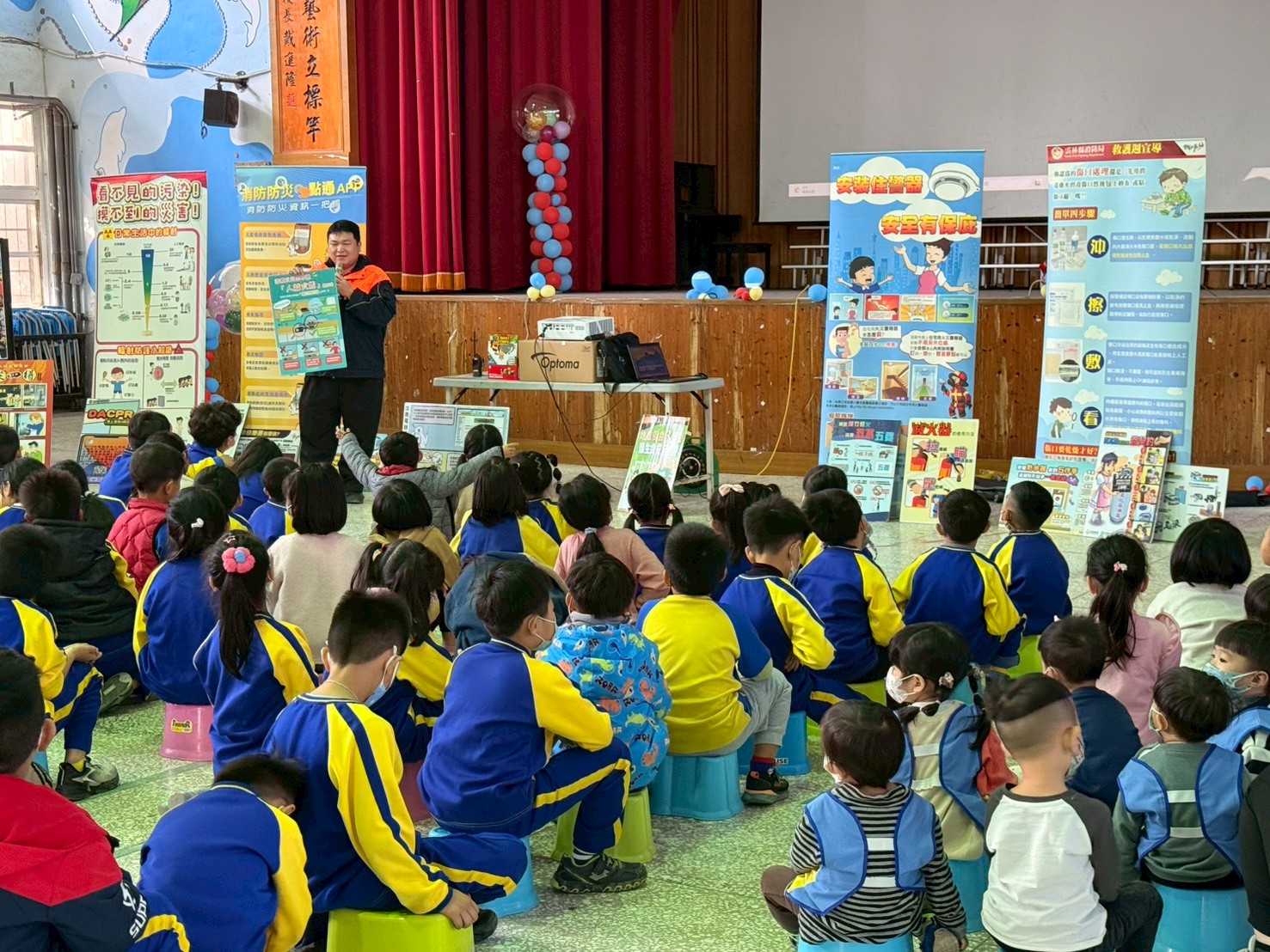 本次宣導由消防人員親自向學童說明常見災害之正確應變方式,內容涵蓋地震、火災發生時之避難原則,以及日常生活中意外受傷時的基本救護觀念,如正確撥打119、簡易止血與自我保護措施等。宣導過程搭配圖卡解說與情境模擬,使學童能更清楚理解災害發生時應採取的正確行動。