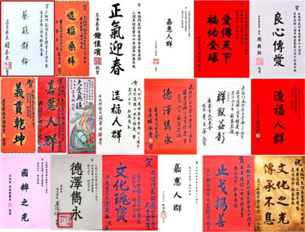 各界致贈中堂、墨寶、賀函,為太極門氣功養生學會60週年暨屏東道館館慶、新春茶敍獻上祝福。
