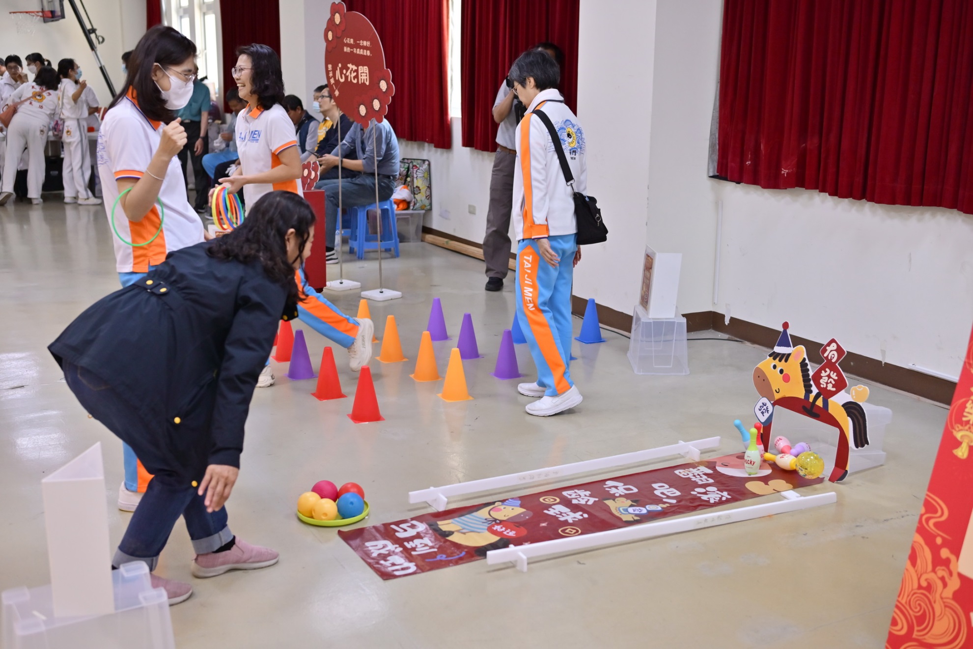 鼓聲震天、樂聲悠揚,現場洋溢濃厚年節氣氛。太極門二胡樂團以溫潤樂音揭開活動序幕,合唱團以溫暖歌聲傳遞新春祝福,神鼓陣與威風戰鼓陣磅礴登場,鼓聲鏗鏘振奮人心;太極門Energy Boys & Energy Girls充滿活力的「龍馬舞」、火龍珠與俏皮祥獅的「淨修樂」,展現老門派世代傳承、團結合作的文化精神。會場另一側的童玩互動區同樣熱鬧,民眾抽紅包迎好運,體驗象徵「龍馬精神強力出擊」的保齡球,以及寓意「圈中貴人」的套圈圈活動凝聚眾人祝福,祈願新的一年福氣滿盈、心想事成。