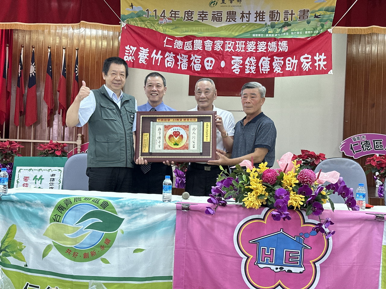 仁德區農會總幹事曾佳哲表示,與家扶結緣於民國95年,一則家扶兒考取優質大學無能力上學的新聞讓家政班成員開始認養「竹筒愛心撲滿」,他說「助貧不應僅僅是一個人做而是要集合同事們一起做,才能發揮聚沙成塔的更大效益」,歷經20年始終不曾間斷且愈來愈多員工及青農一起加入扶幼行列,充分發揮銅板傳愛的精神,並帶動現場氣氛。
