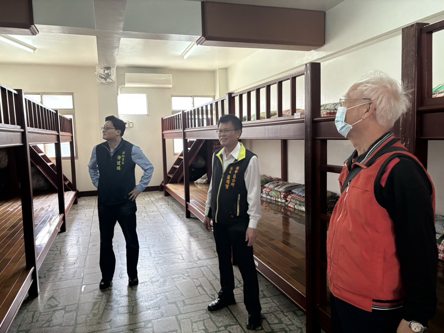 張明寶區長與相關人員亦逐一檢視各選手村淋浴間及設備,希望讓全國選手「住得安心、打得順心」,在學甲留下美好回憶。