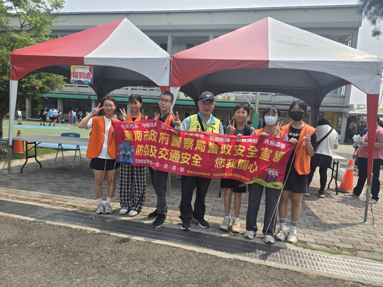 台南市政府警察局路老師李晟邦警官及志工也到場宣導登革熱防治四大步驟-巡、倒、清、刷,杜絕病媒蚊孳生,以確保市民健康安全,宣導效果良好。