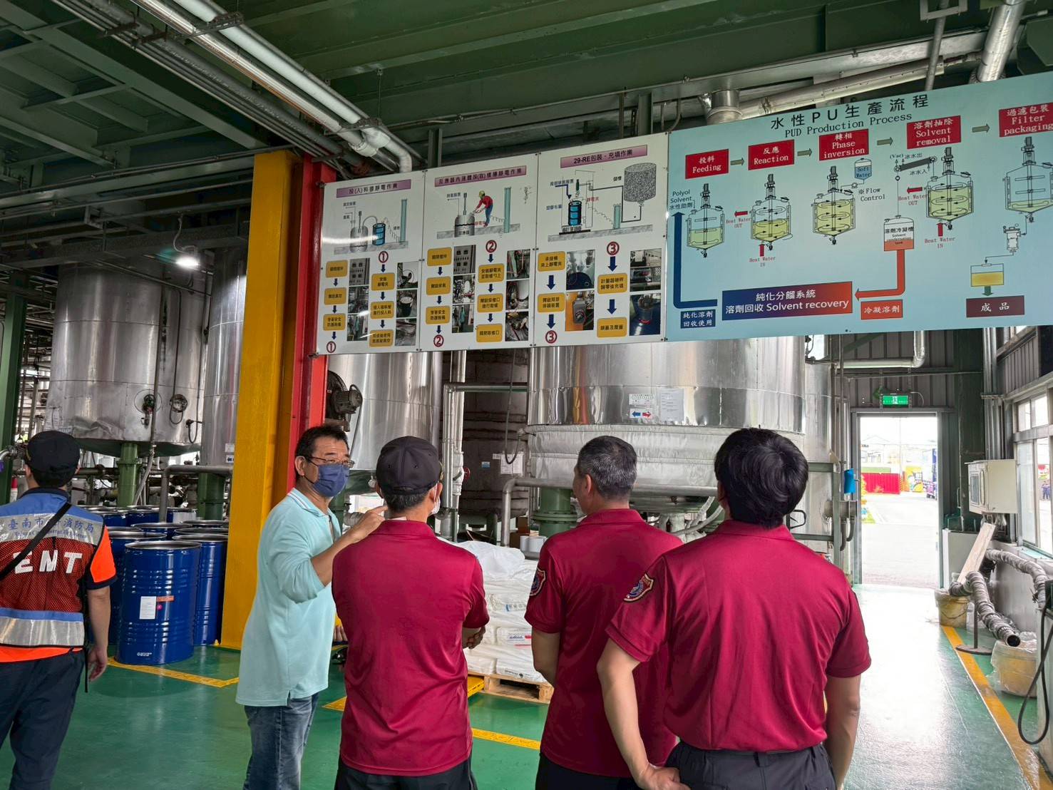 第3大隊長鄭誌峰表示,化工廠區內常存放多種類型的化學原物料,且各自具備不同的特性,搶救時的戰術考量遠比一般建築火警複雜。因此,這次踏勘的首要任務,就是扎實的「環境掌握」及第1時間「危害風險」的評斷;包括化學品處理區場所、儲存場所等,並實地了解廠區內外的搶救動線、消防設備配置及水源位置等救災資源。同時,也現場指導業者在災害發生初期的正確緊急應變作為,雙方更藉此機會充分交流實務經驗,建立良好的救災默契。