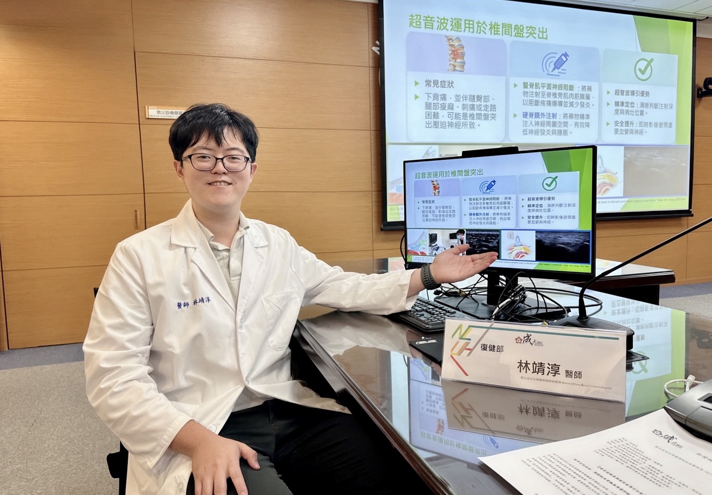成大醫院復健部林靖淳醫師表示,隨著醫療影像技術的進步,超音波在肌肉骨骼神經疾病的應用日益重要。超音波可提供即時動態影像,清楚辨識肌肉、肌腱、韌帶及神經等軟組織結構,不僅可找出疼痛來源,更能定位病灶位置,協助醫師制定合適的治療計畫。