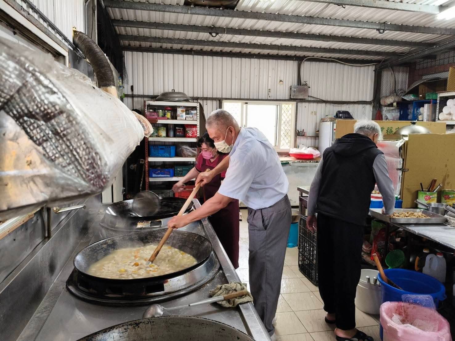 ▲葉竹林日前參加西嶼鄉大池社區長者共餐活動,幫忙廚房做羹湯。(圖/葉竹林臉書)