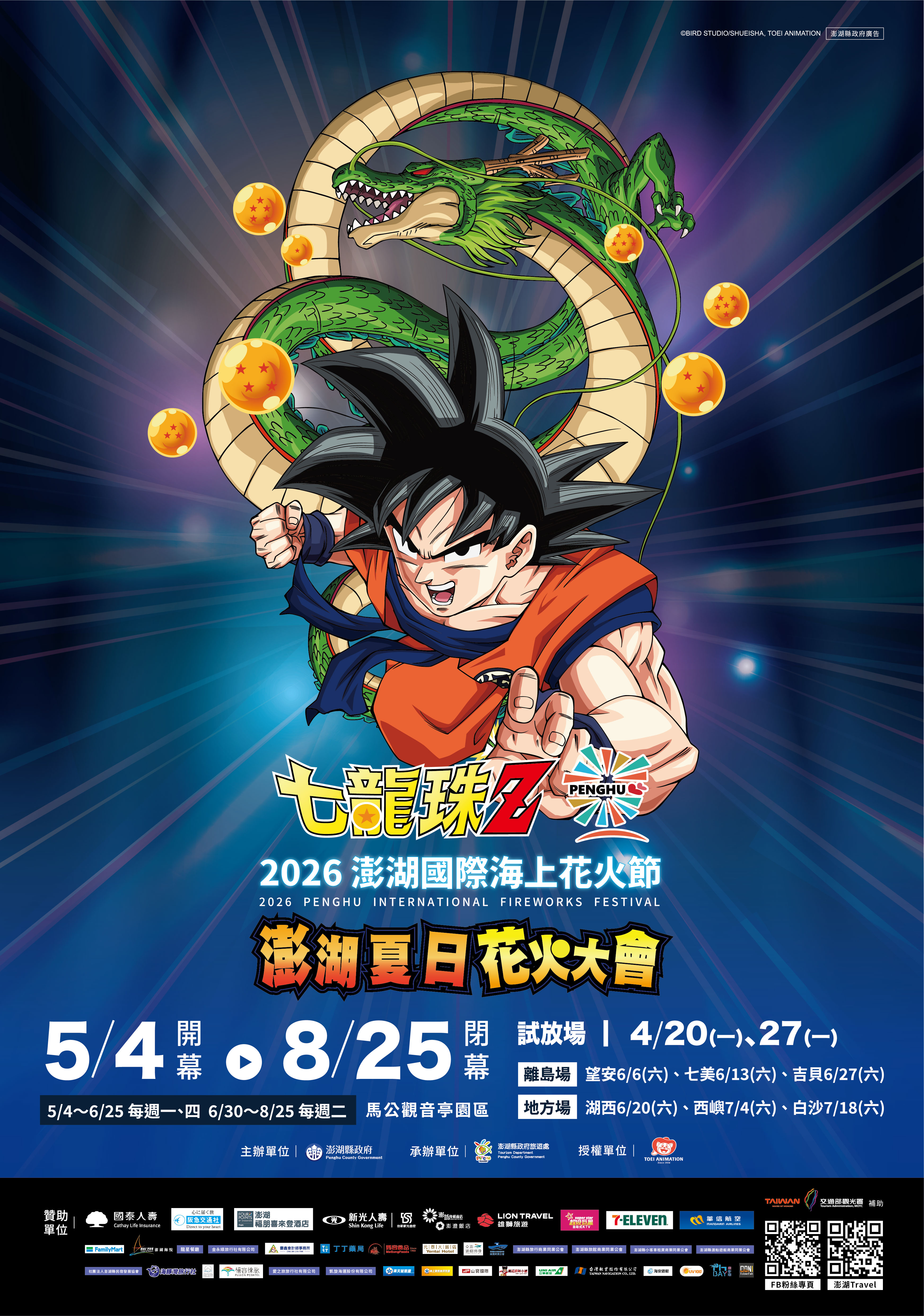 今年與《七龍珠 Z》合作,不僅是視覺與 IP 的結合,更象徵一種精神的連結。《七龍珠 Z》所傳達的「不斷挑戰、永不放棄、團結奮戰」精神,與澎湖在海島環境中所展現的堅韌與活力相互呼應,透過煙火與無人機展演重現經典場景,打造熱血與感動兼具的夜空演出。