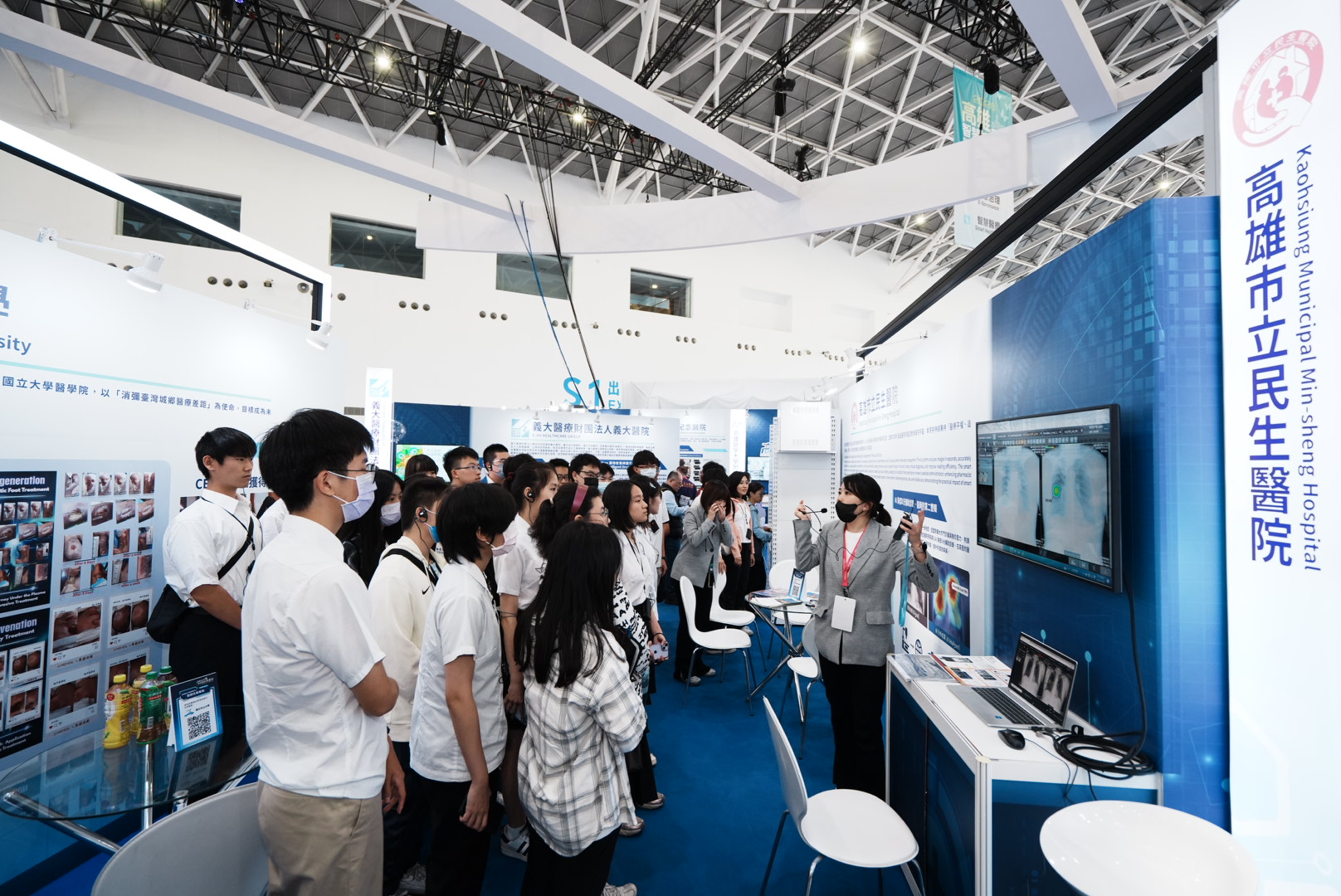 今年高雄智慧城市展在高雄展覽館盛大展出,其中匯集高雄市各級醫療機構及中山大學醫學院的智慧醫療館,包括高雄長庚、高雄榮總、高醫大附醫及義大四大醫學中心,以及市立小港、大同、聯合、民生、旗津、凱旋、岡山、中醫、鳳山醫院,還有阮綜合、高醫岡山、高雄秀傳、中山大學醫學院,都於現場展出其近期研發及推行成果,呈現醫療從預防到治療的全方位進化。