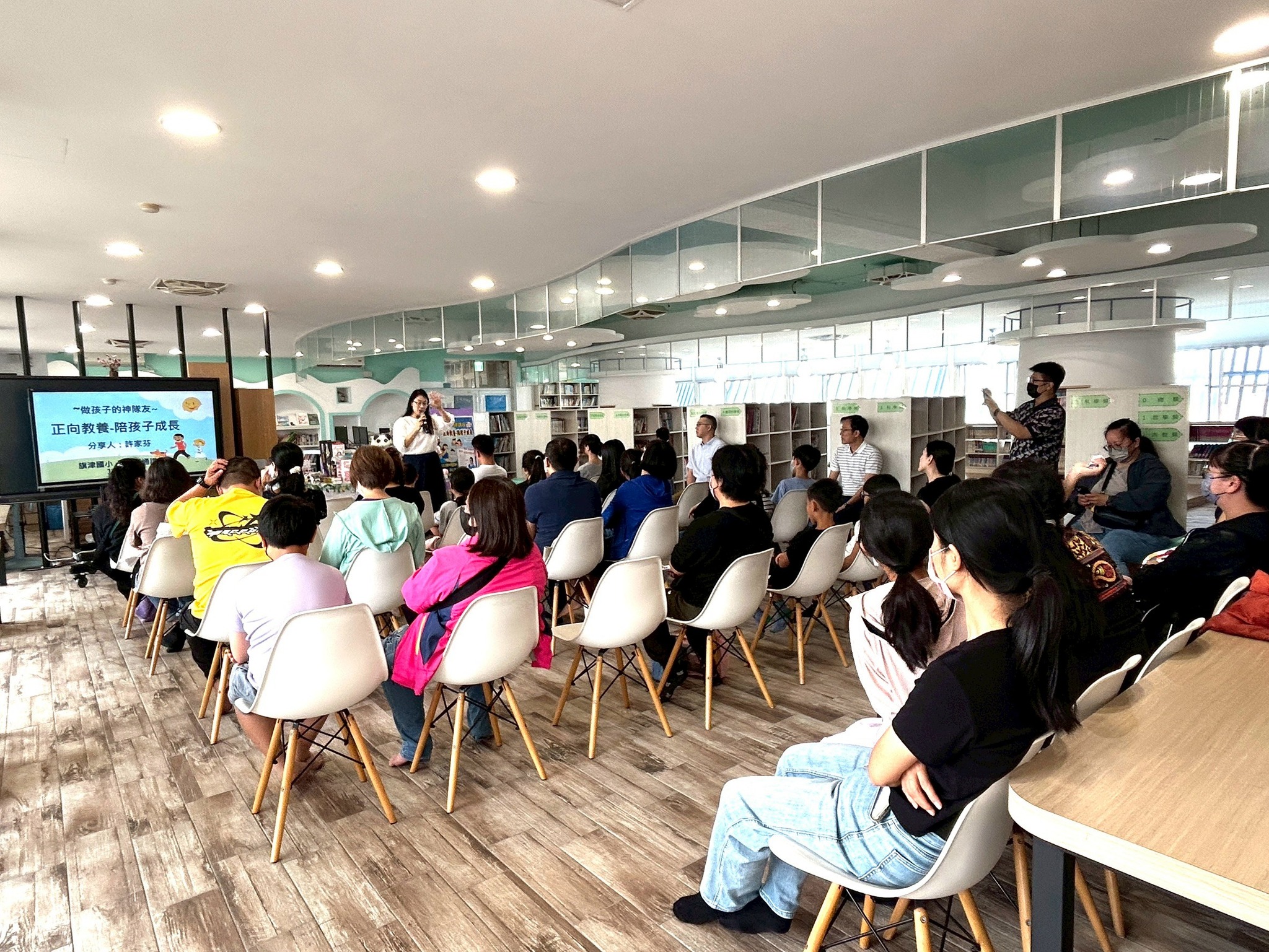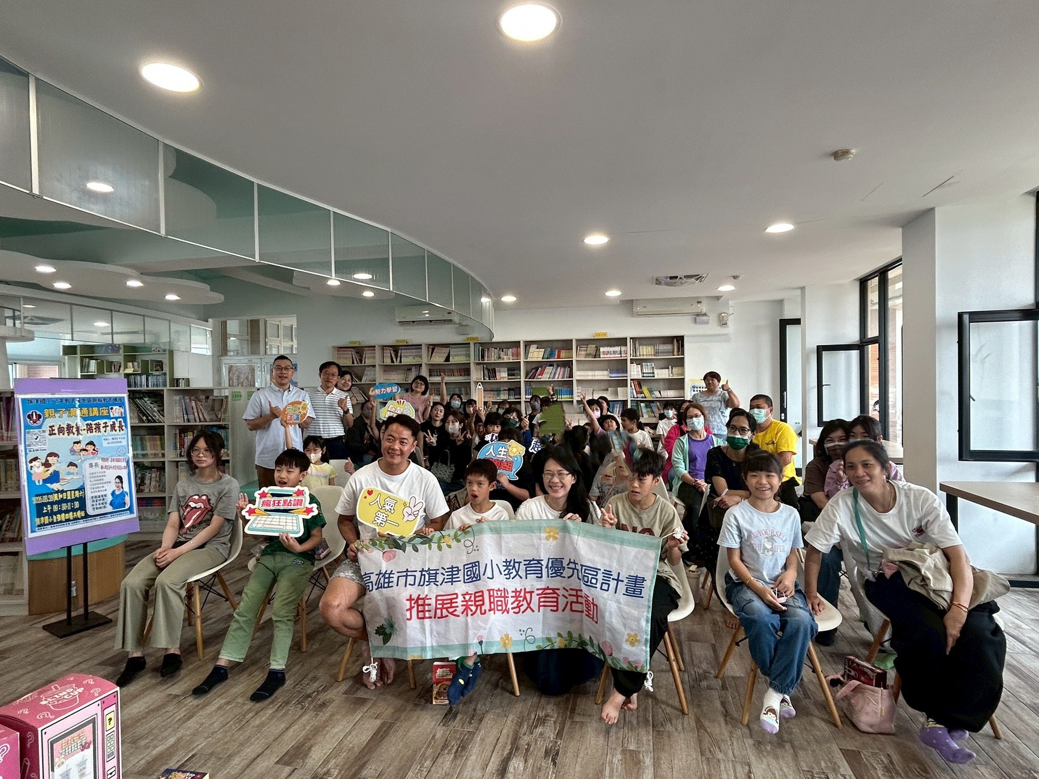 今(28)日上午,旗津國小於校內共讀站溫馨辦理親子教育講座,邀請原任教於龍華國小、現為諮商心理師的許家芬老師蒞校分享,以「正向教養-陪孩子成長」為主題,帶領家長與孩子一同探索愛與教養的真諦。👨👩👧👦📚